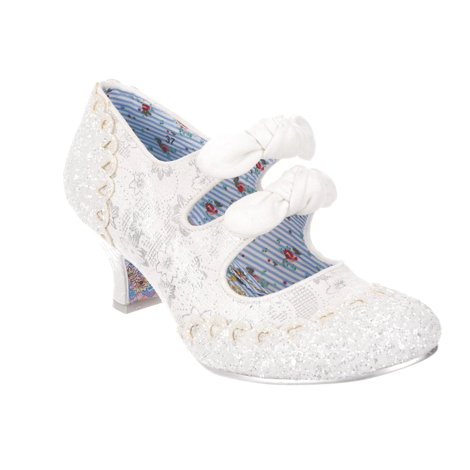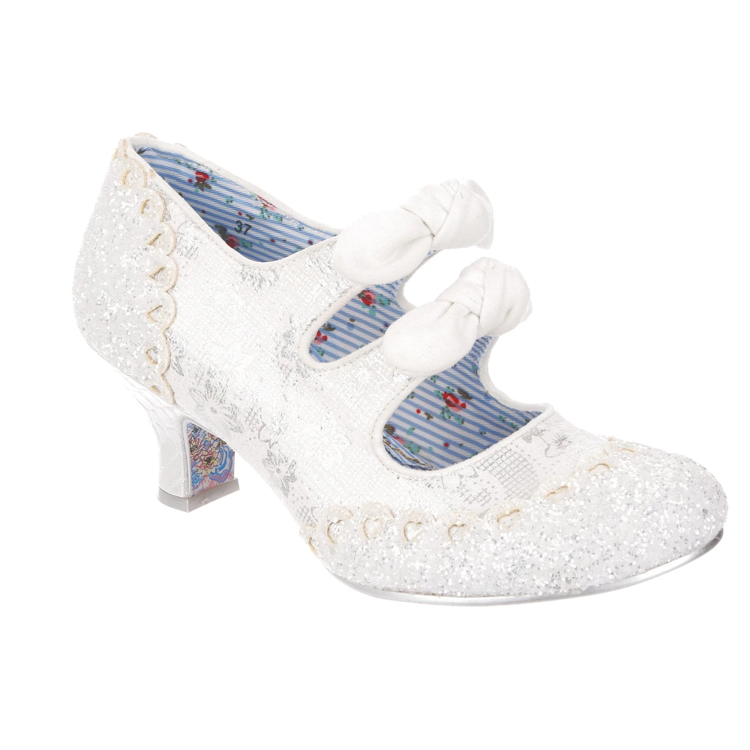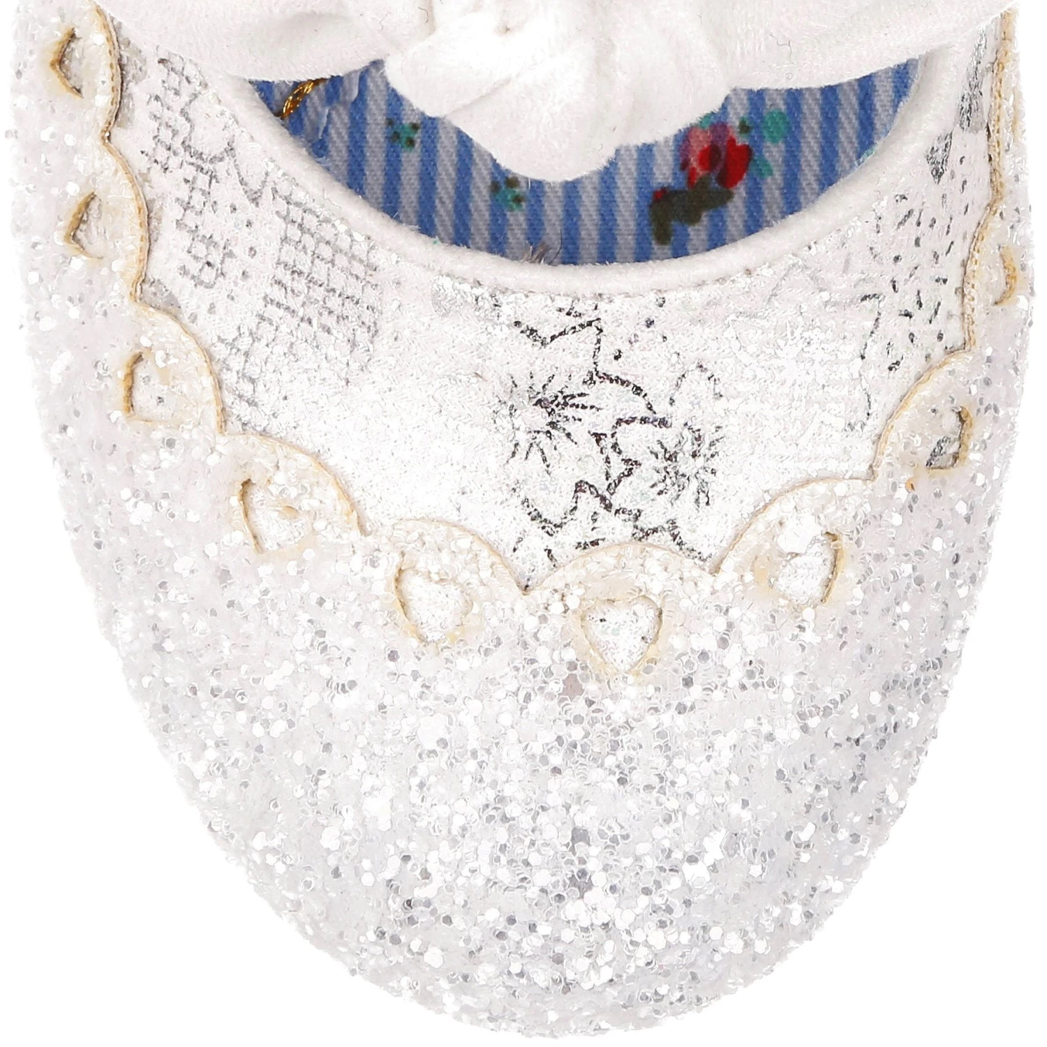 Aren’t these wedding shoe heaven?! Sparkle and shine with our iconic Calendulas that have been reimagined for your bridal dreams! With a subtle white and silver floral and stunning white glitter toe, with antiqued cut out hearts for added romance! Finished with twin bows on the straps that hides elastic sides to make it easy to slip these beauties on. Choose these as your happily ever after!