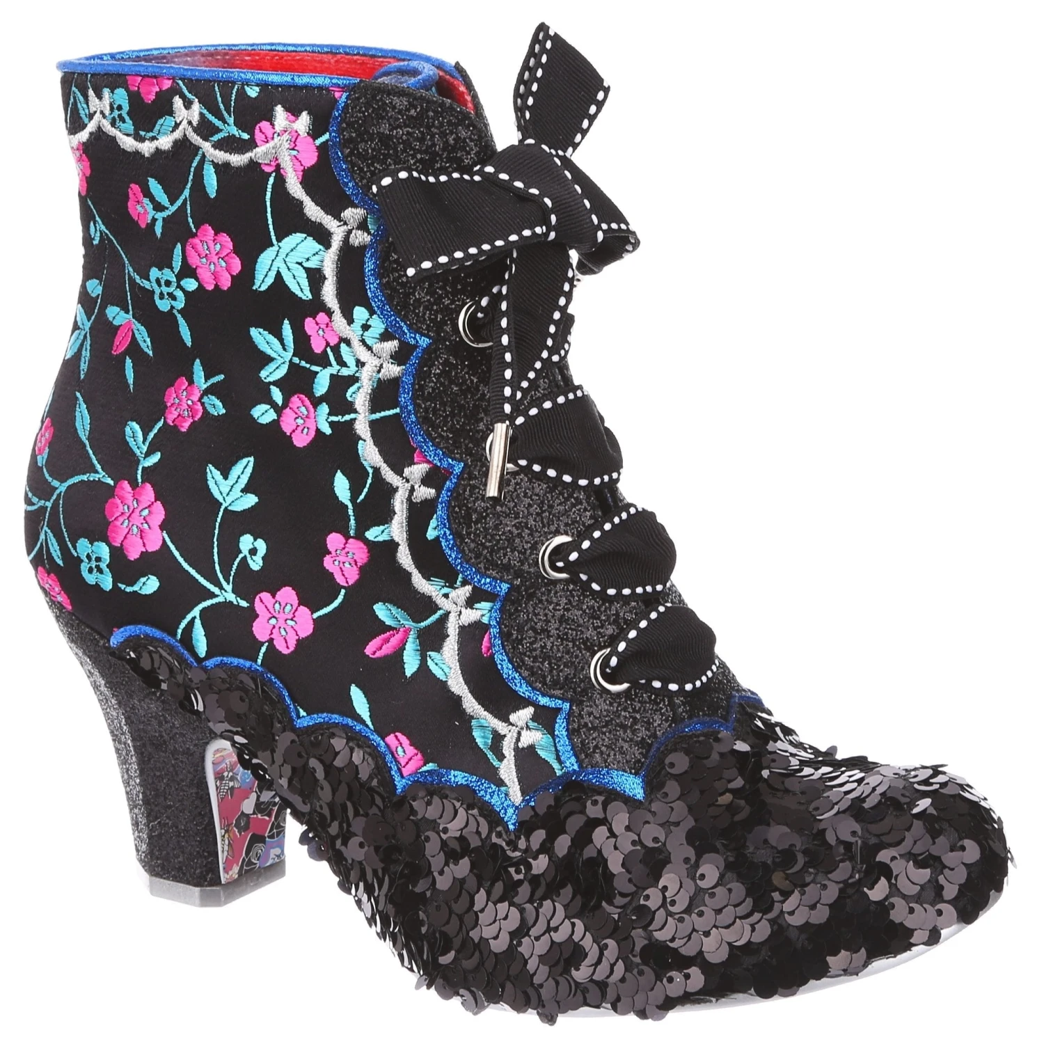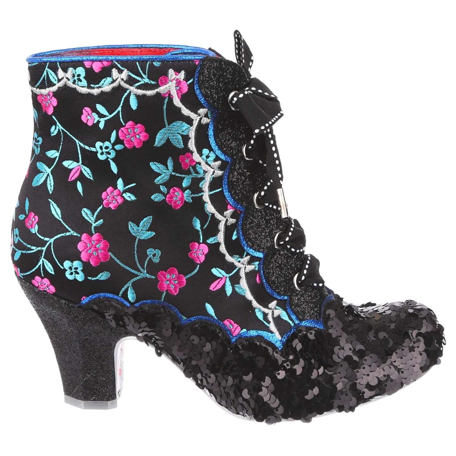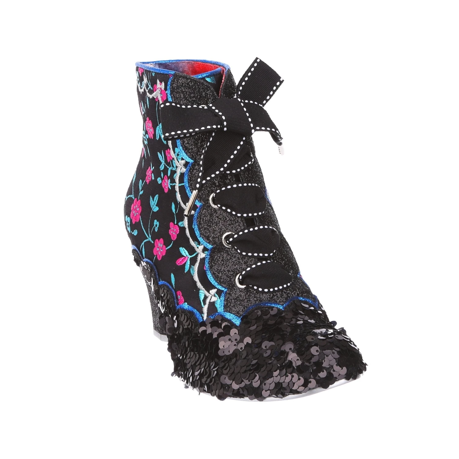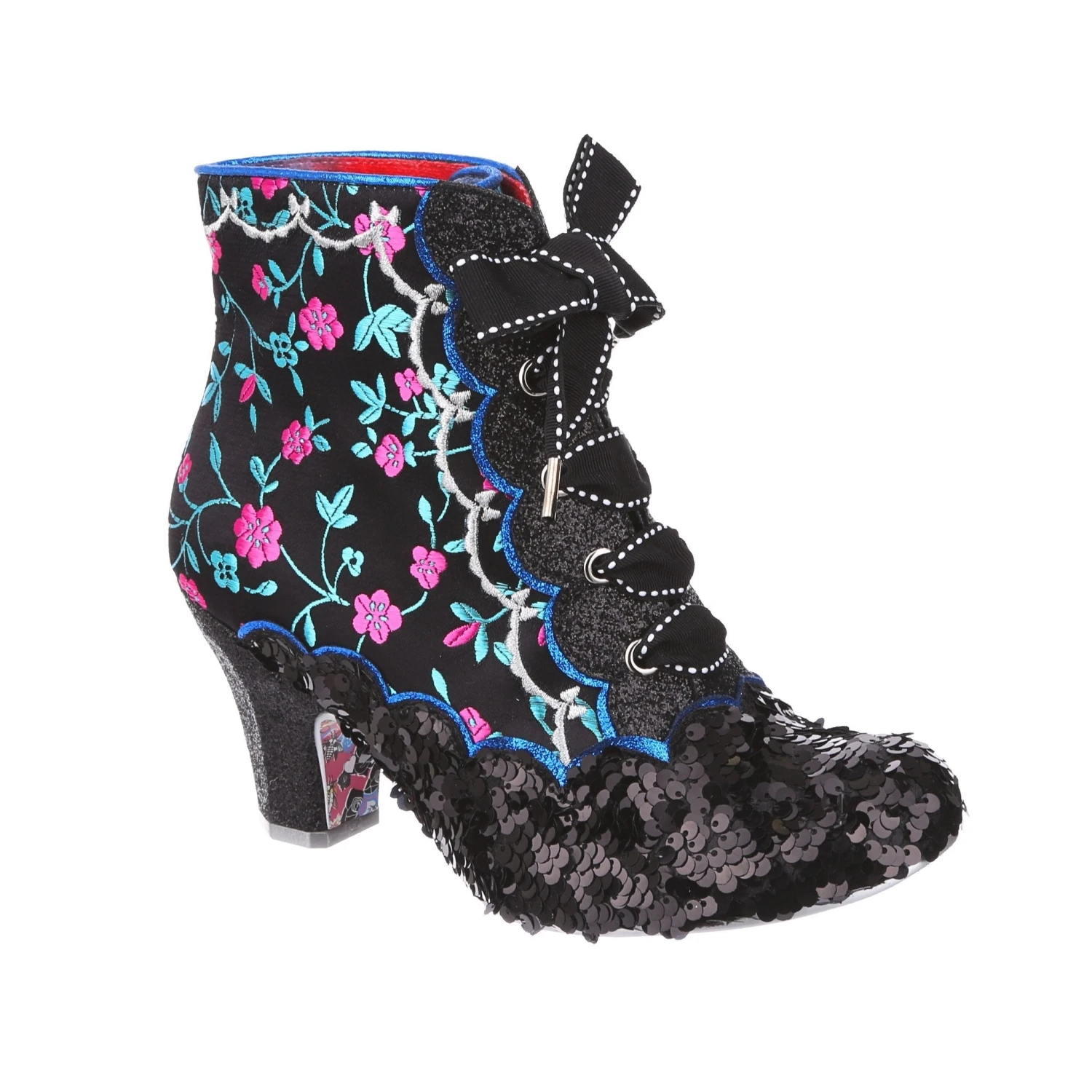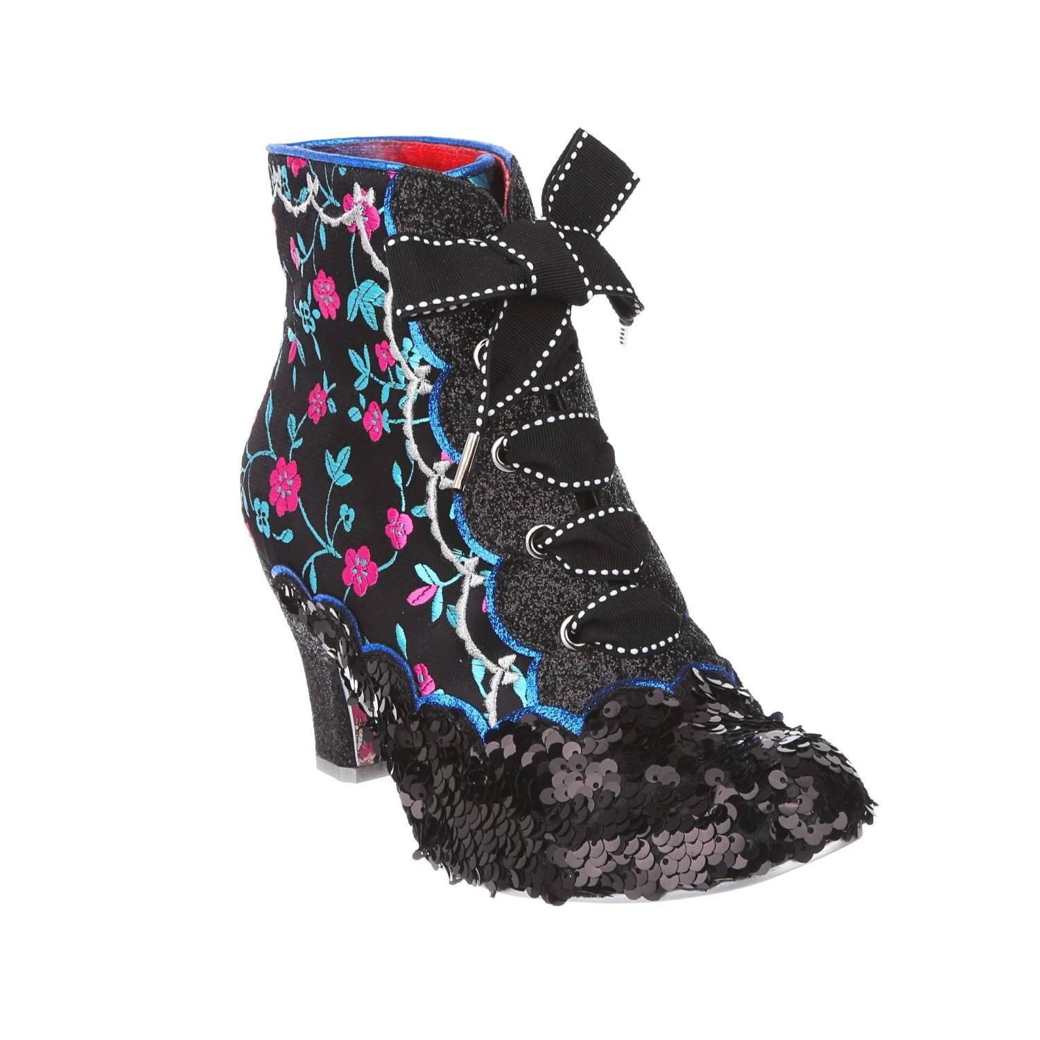 Tired of just wearing boring boots? We have got you covered! These eye-catching wonders are anything BUT boring! Featuring a striking black, fuchsia and teal floral, which is paired with shimmering black sequins and glitter. Extra details include stunning silver embroidery and a fabulous monochrome grosgrain ribbon lace, they are definitely not your average pair! Perfect to wear with skirts, trousers, tights or socks, these lovelies need to be yours today!