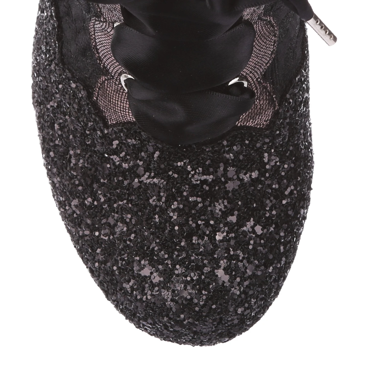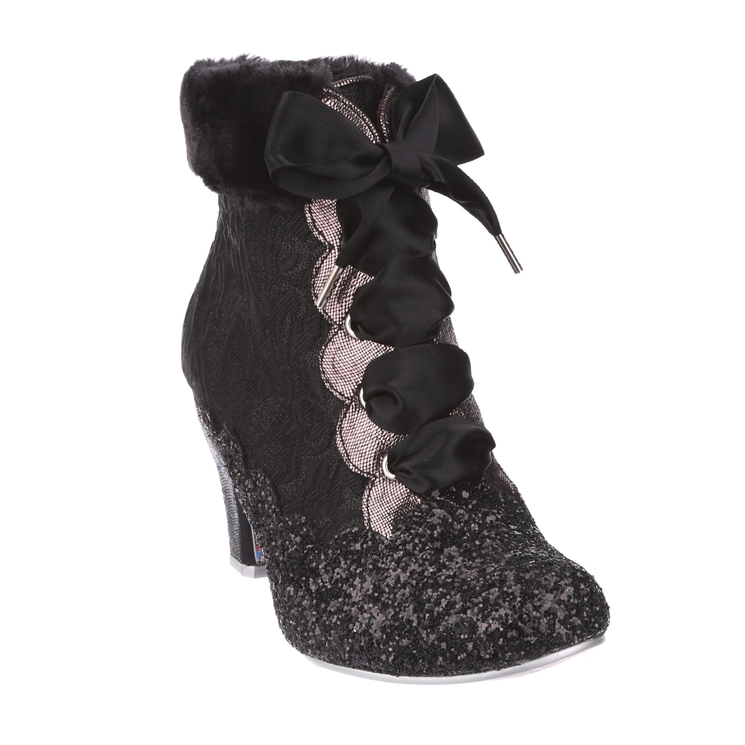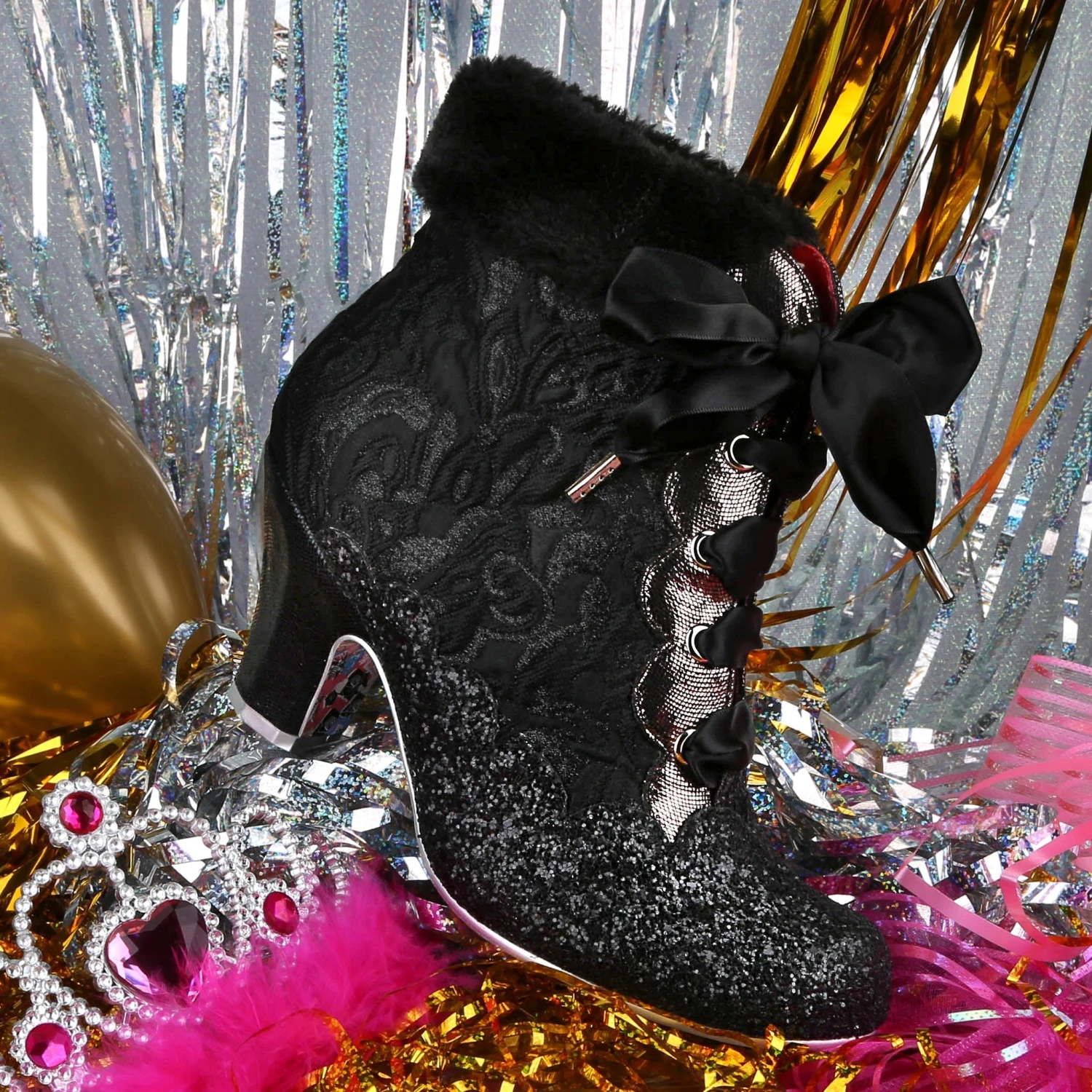 Cosy up in these cuties! Fancy A Cuppa is back this season, and here with some luxurious new textures. All decked out in luxe black brocade and glistening glitter, pulled together with ribbon laces and topped off with a matching faux fur collar. Absolutely perfect for when you want something for the colder months, but still want to show that you have some mega style!