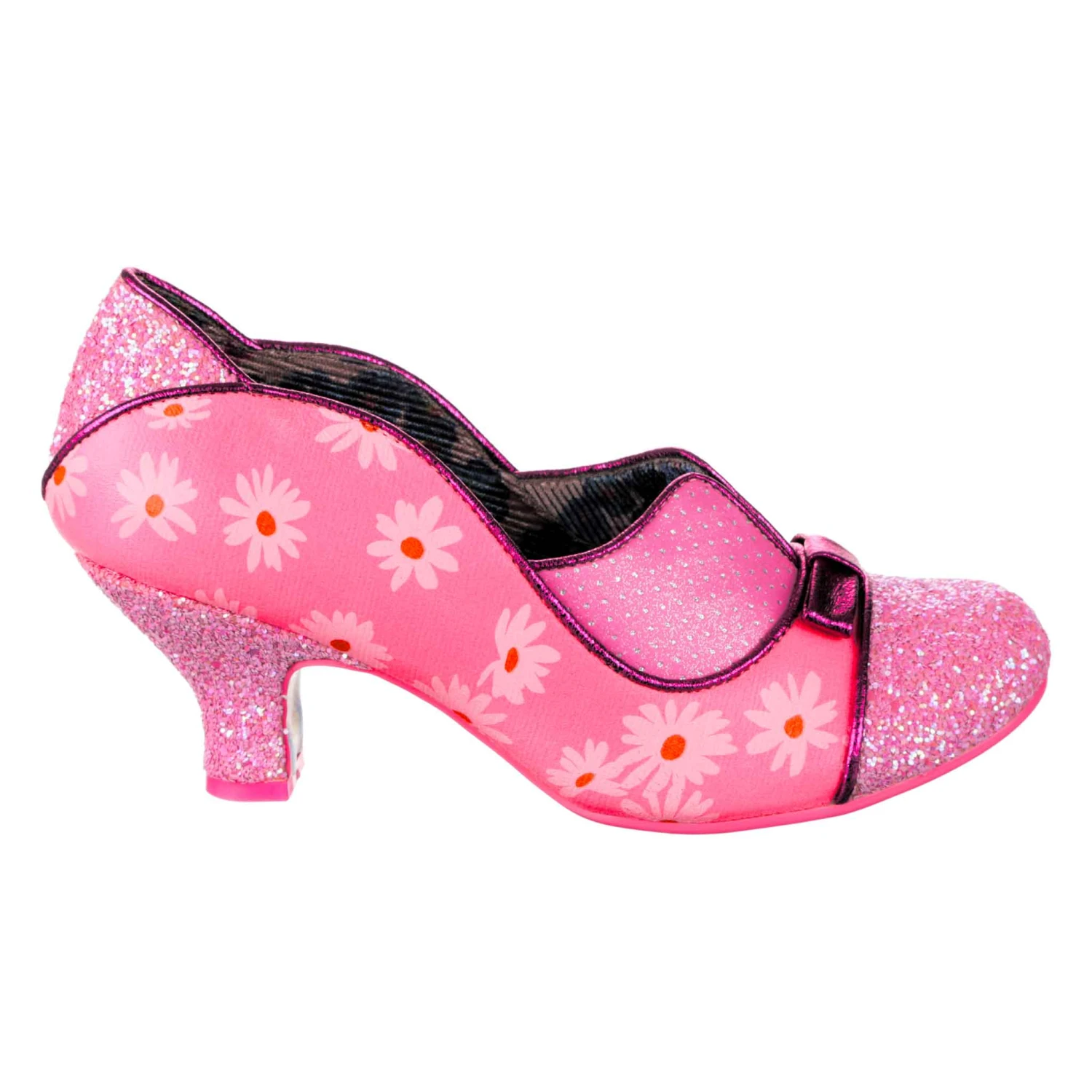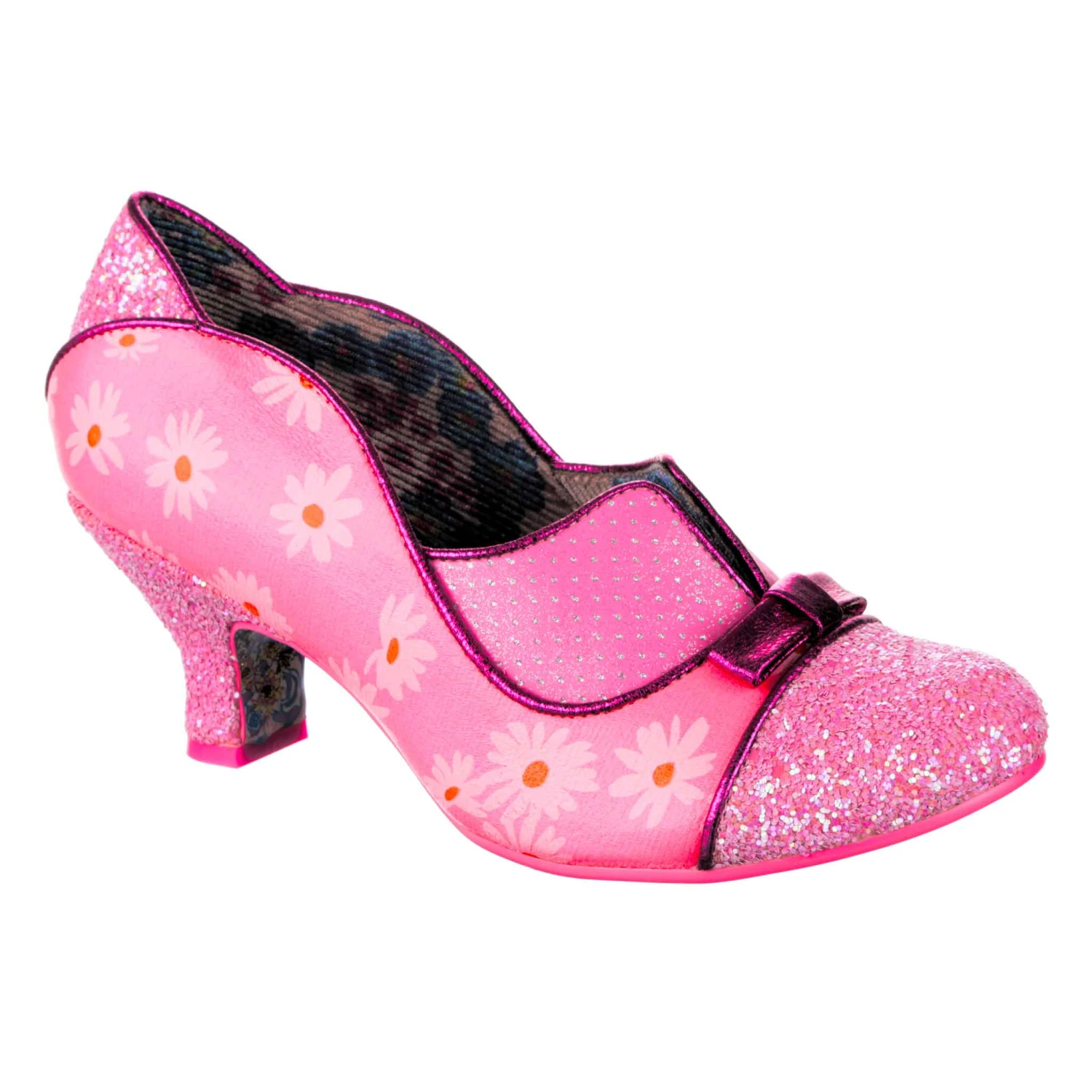 Slip your feet into these super wearable wide fit fan faves. Add some subtle shimmer to your wardrobe with these bold pink floral mid heel shoes. A pink and silver polka dot front has a split vamp that makes them easier to get in and out of and topped off with an adorable bow. A pink glitter mid heel is the perfect height for all day wear, so comfy you won’t want to take them off!