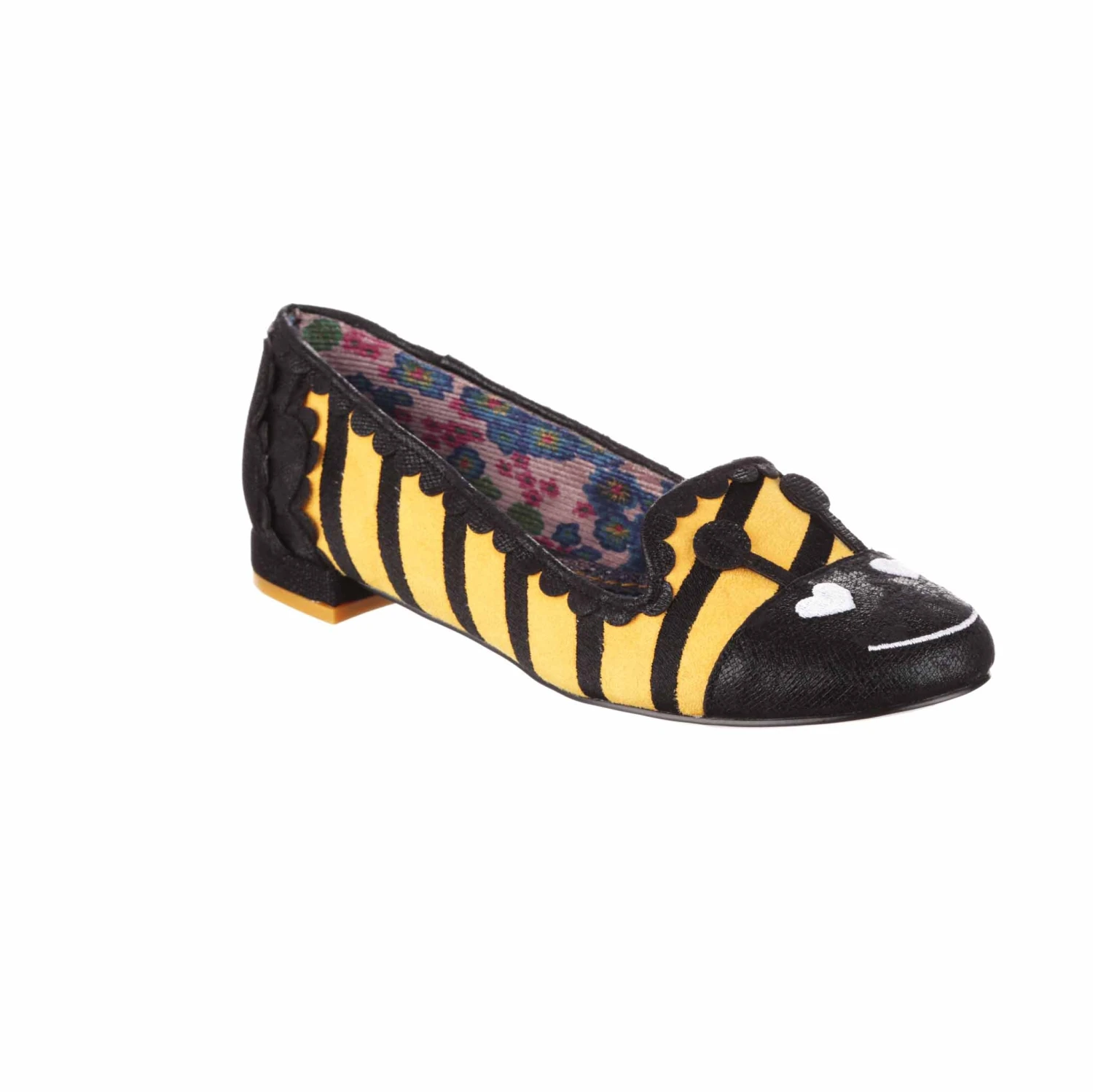 Aren’t these so cute?! These bumblebee flats are made of yellow suedette, and have a cute little bug face on the toe! Black stripes are embroidered along the length of the shoe, and black mesh scalloped details decorate the heel of the shoe. The antenna of the bumblebee can lie flat, or sit up for more impact! Catch them today, before they fly away!