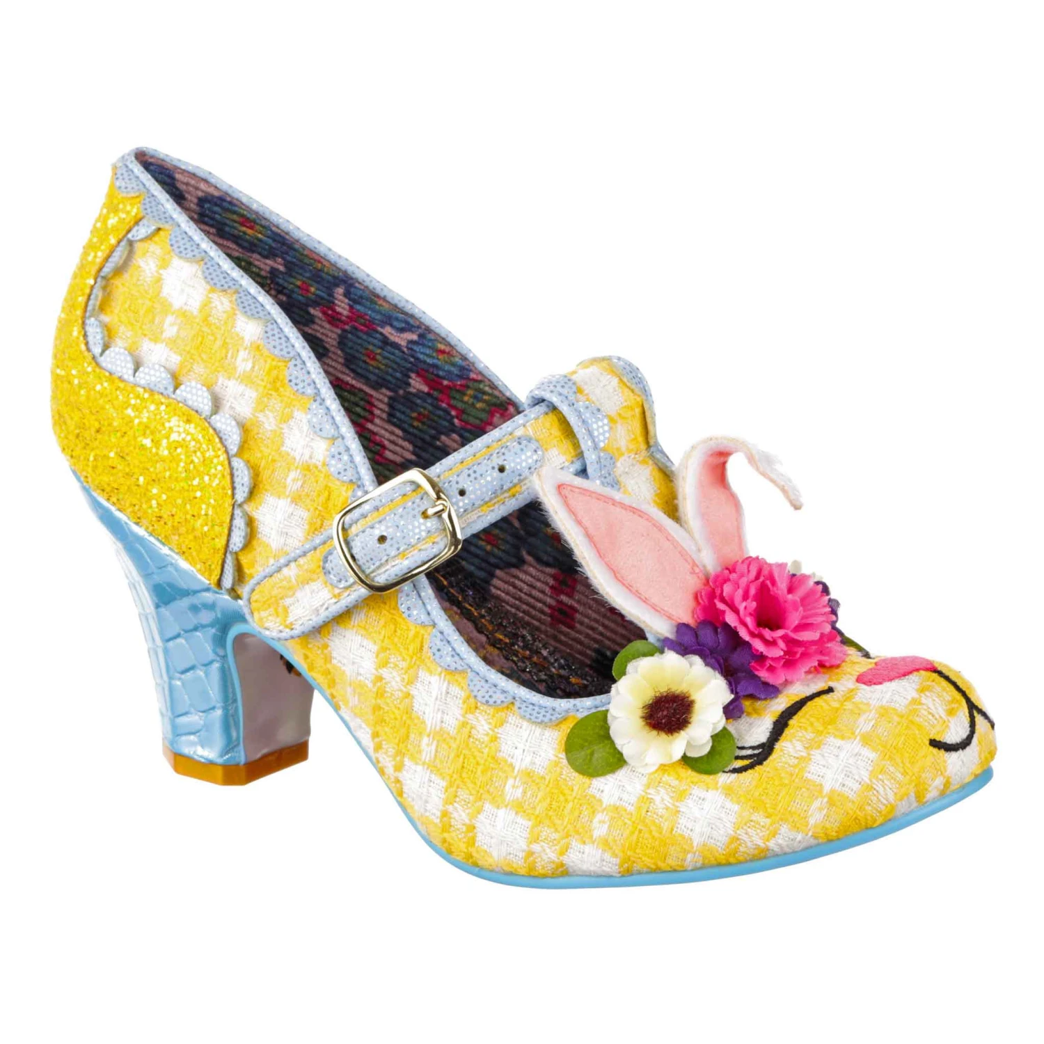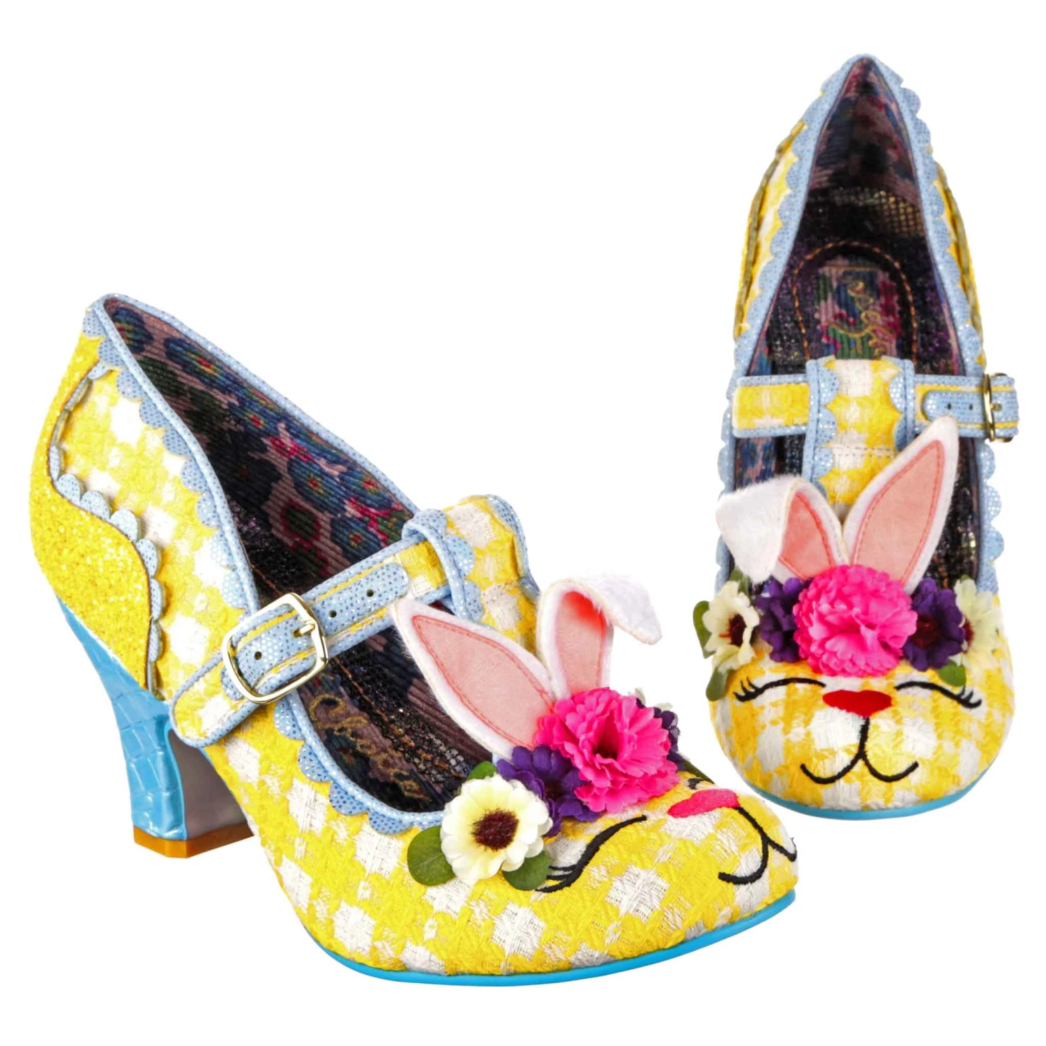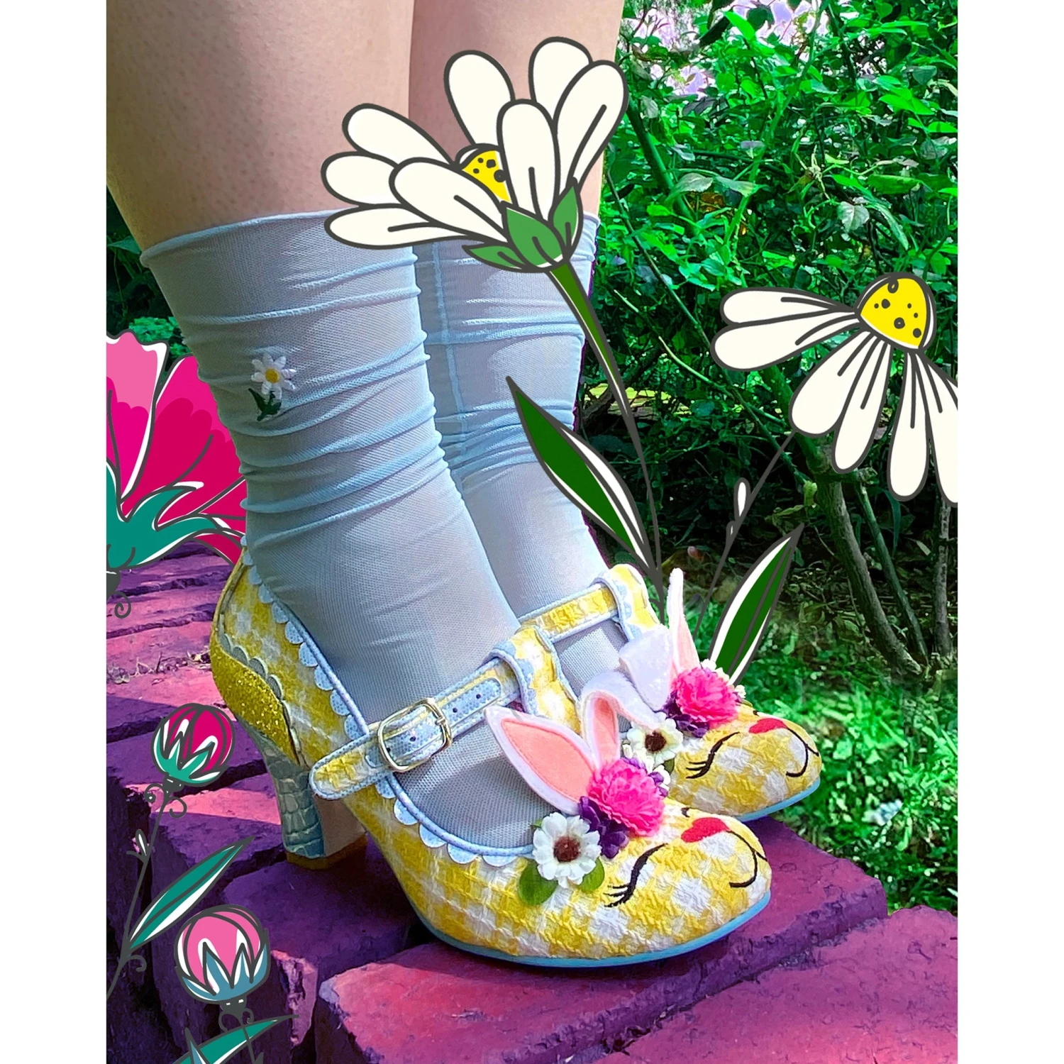 Jump with joy for these adorable bunny mid heels. A buckled t-bar strap sits behind 3D bunny ears and flower crown decorated toes for the perfect springtime shoes. These gorgeous yellow and blue heels will add some colour to your wardrobe as the weather starts to brighten. Grab them now and see where the bunnies will take you!