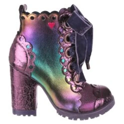 These clown slides are so cute and comfy! Slip on these purple platform sliders and you’ll be ready to entertain. The wide strap sparkles with iridescent lilac sequins and a rosy-cheeked pierrot sits waiting for their time to shine. Lightweight sandals that have an ultra bouncy sole, adding a spring to your step and the cushioned sole has a pink and purple harlequin diamond pattern that gives colour and comfort to your outfit!