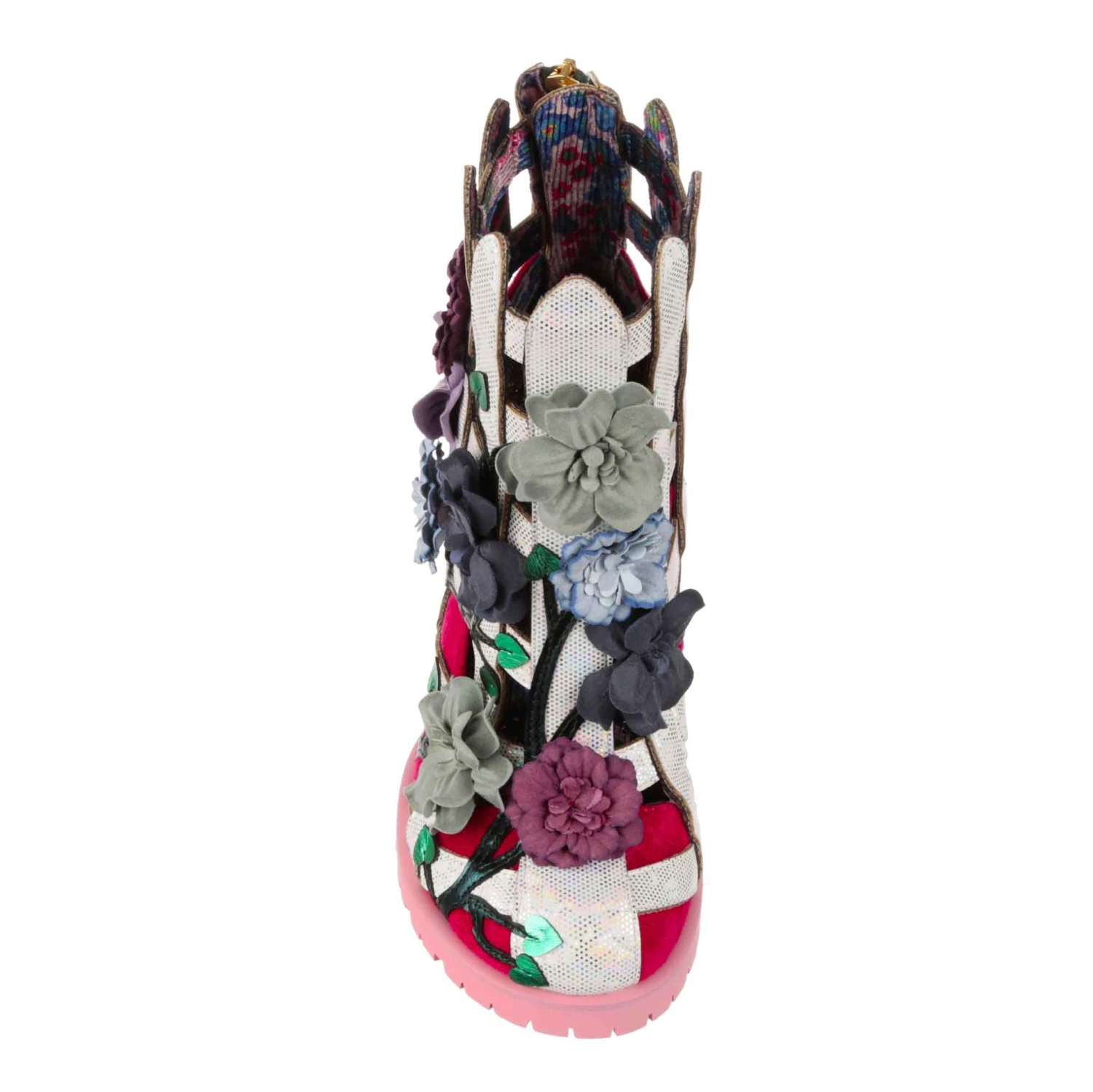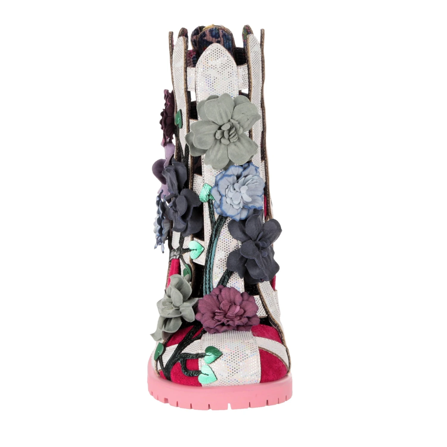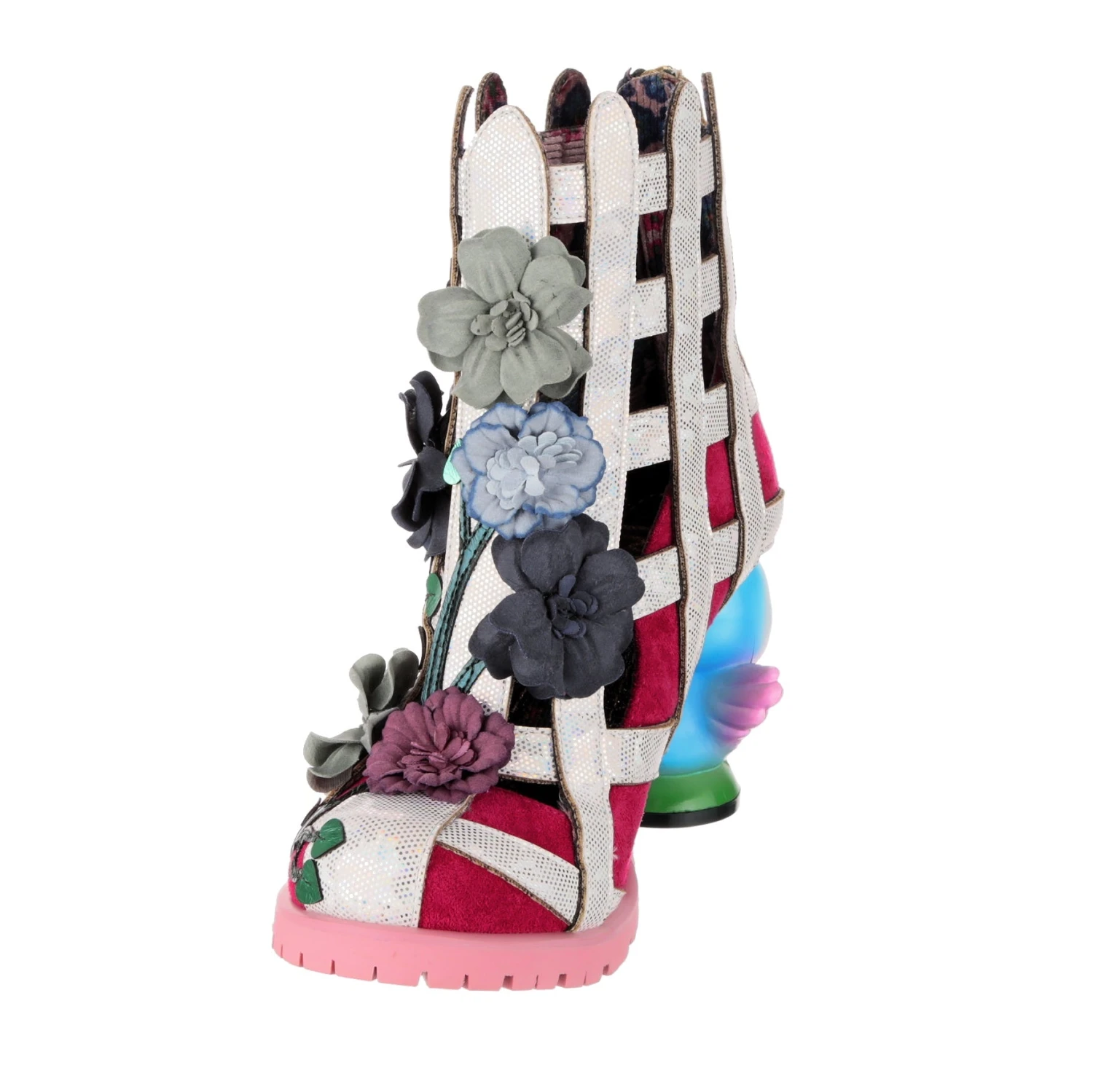 We’ll give you something to chirp about! A lattice fence with creeping vines and 3D flowers enclose your feet in these garden-inspired ankle boots, featuring a kitsch bluebird character heel. A rear zip fastening that makes them easy to slip into, perfect for becoming your go-to showstoppers! Have the vine of your life in these high heel boots!