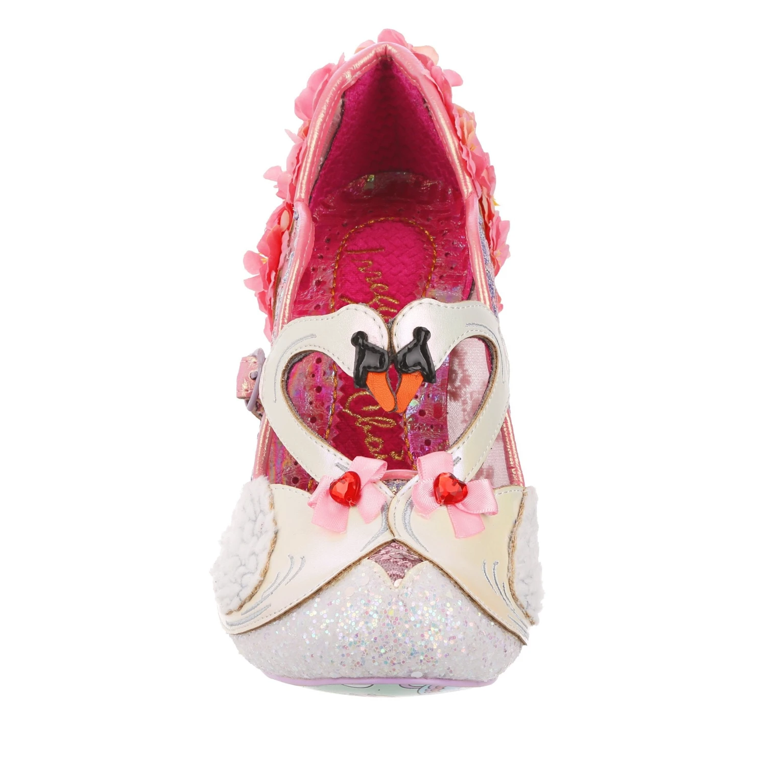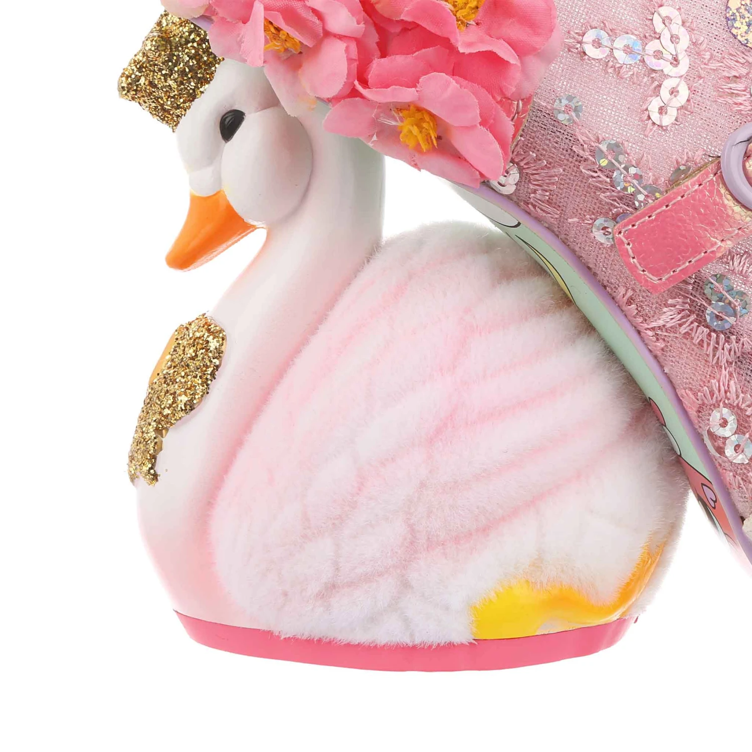 Feeling the love? These swan-tastic heels are the perfect addition! Featuring our stunning swan character heel, these beauties are covered in dreamy pink fake flowers along the back, leading to sparkly pink adorned with two swans kissing on the front of the shoe! A real statement piece that is sure to turn heads!