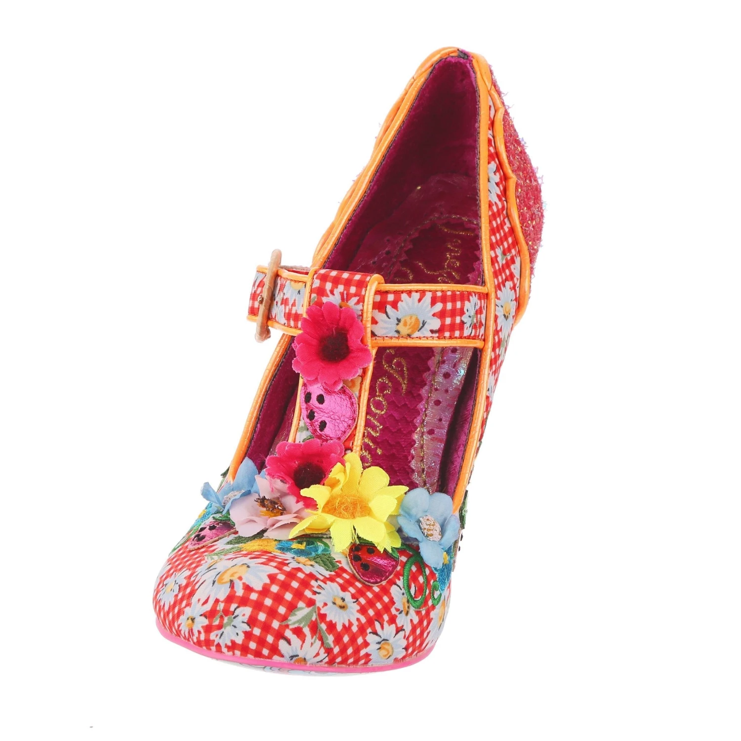 The perfect shoes to put a spring in your step! These T-Bars are covered in the most gorgeous little springtime blooms, which match the darling orange and white gingham upper which has adorable printed daisies on it! The heel and back panelling of the shoe is encrusted in chunky orange glitter, sure to add a little sparkle wherever you go!