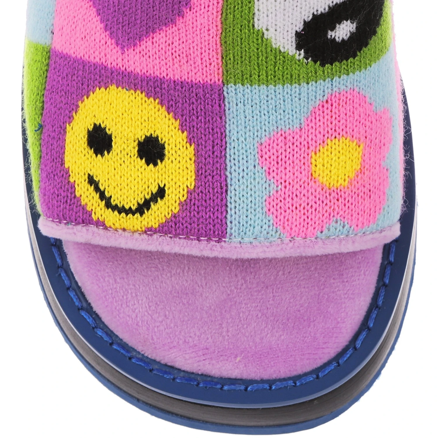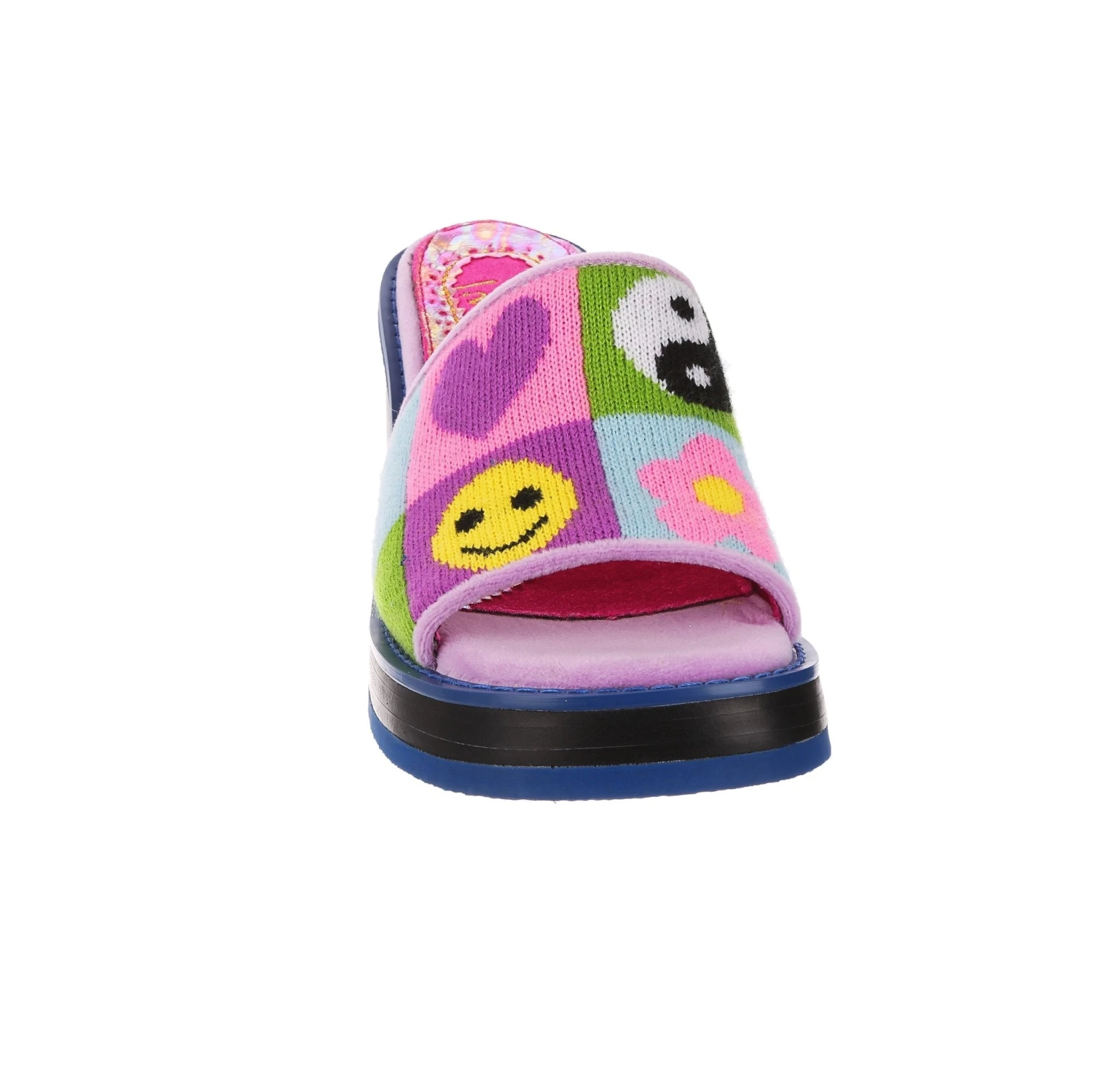 Slip-on these funky fashionista faves! Super cute slide on style, these mules are covered in super cute graphics and have a fun and wearable slick black chunky heel so that you can slip them on and go all day!