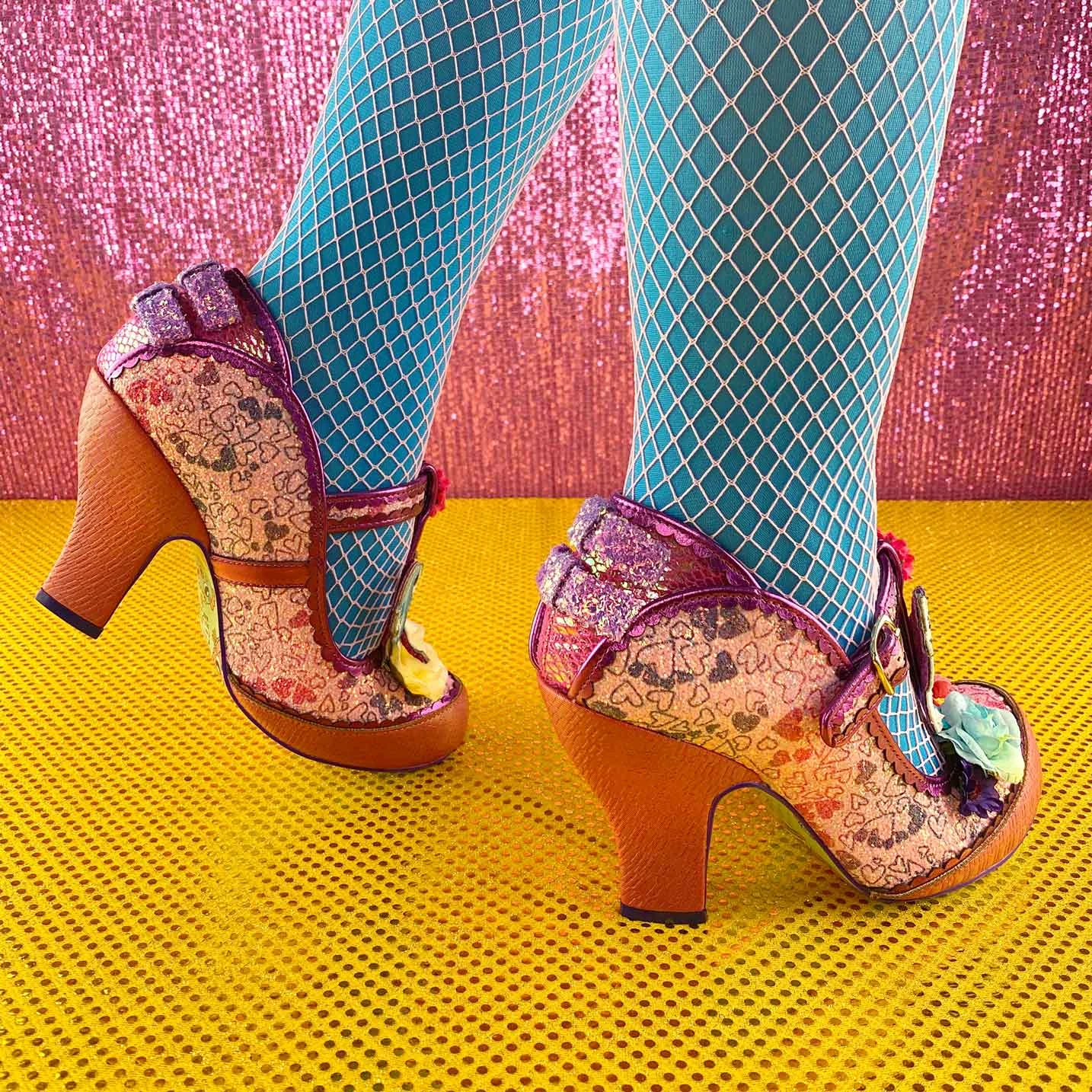 Take a ride on the merry go round with these darling heels! A fabulous T-Bar strap is topped with a magical carousel horse which is, in turn, surrounded by stunning 3D multicoloured flowers and blooms! The base of the shoe itself is a stunning pink embellished with a tonal metallic print! Finished off with two cute pink glitter bows and a buckle for ease of wear, make sure to catch these before they trot off!