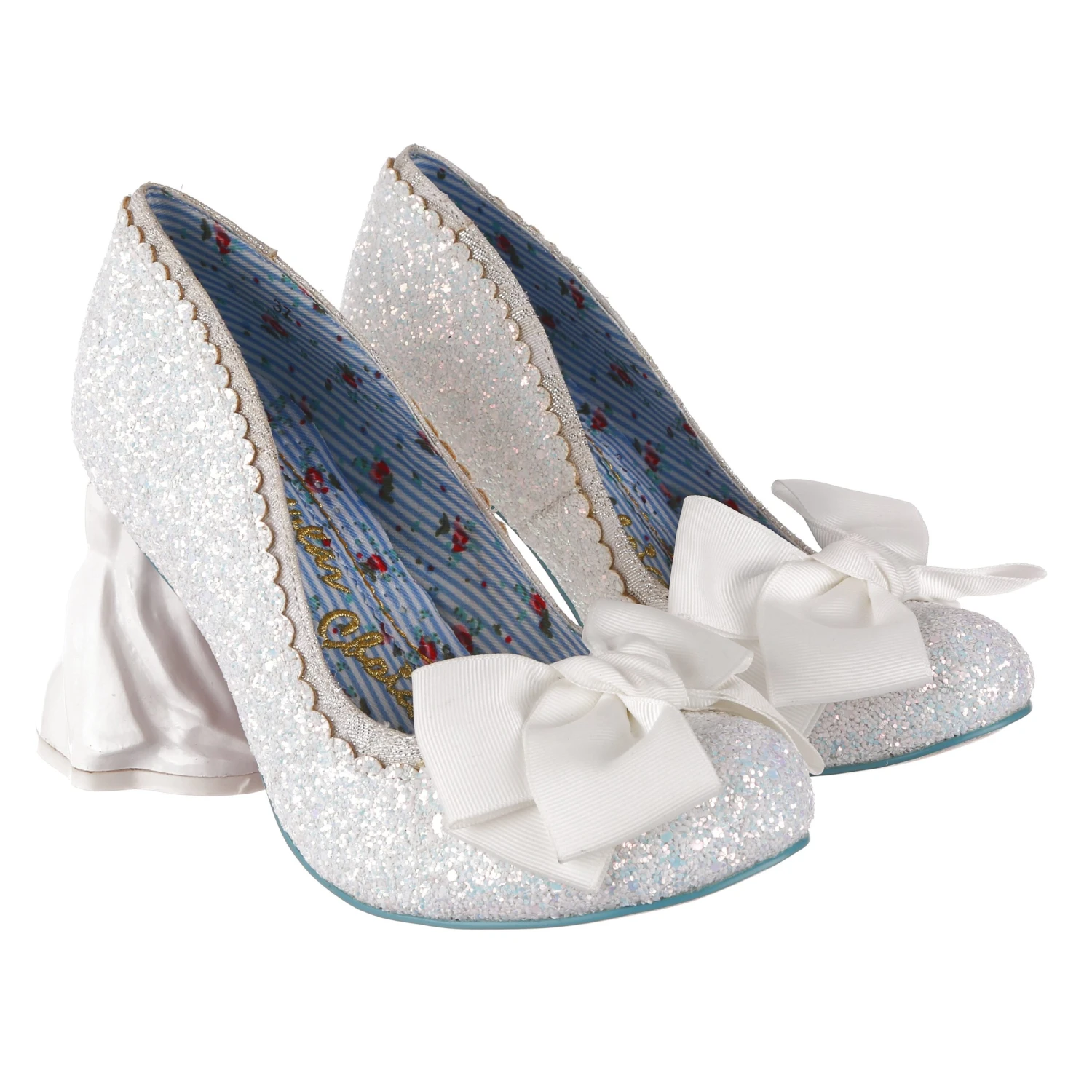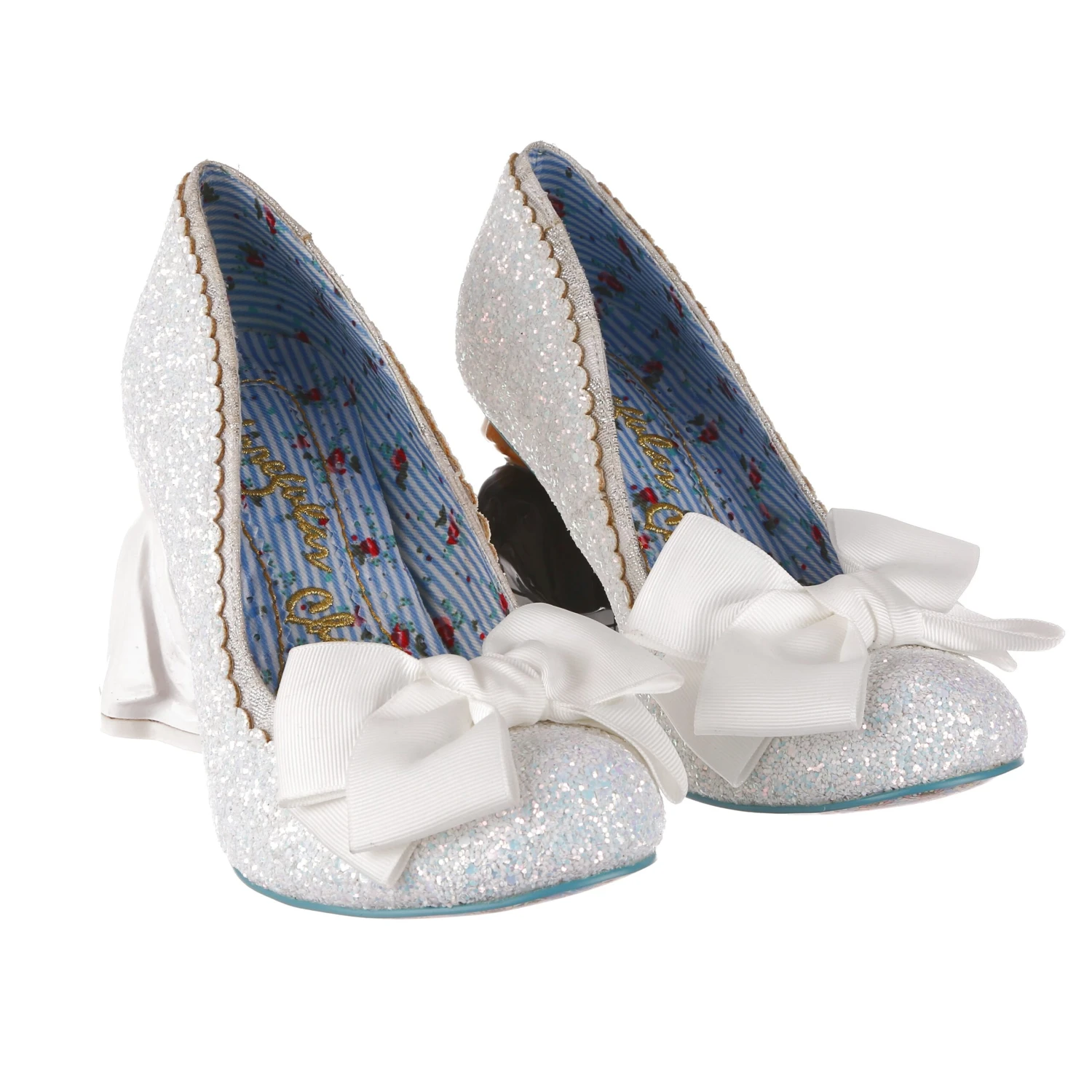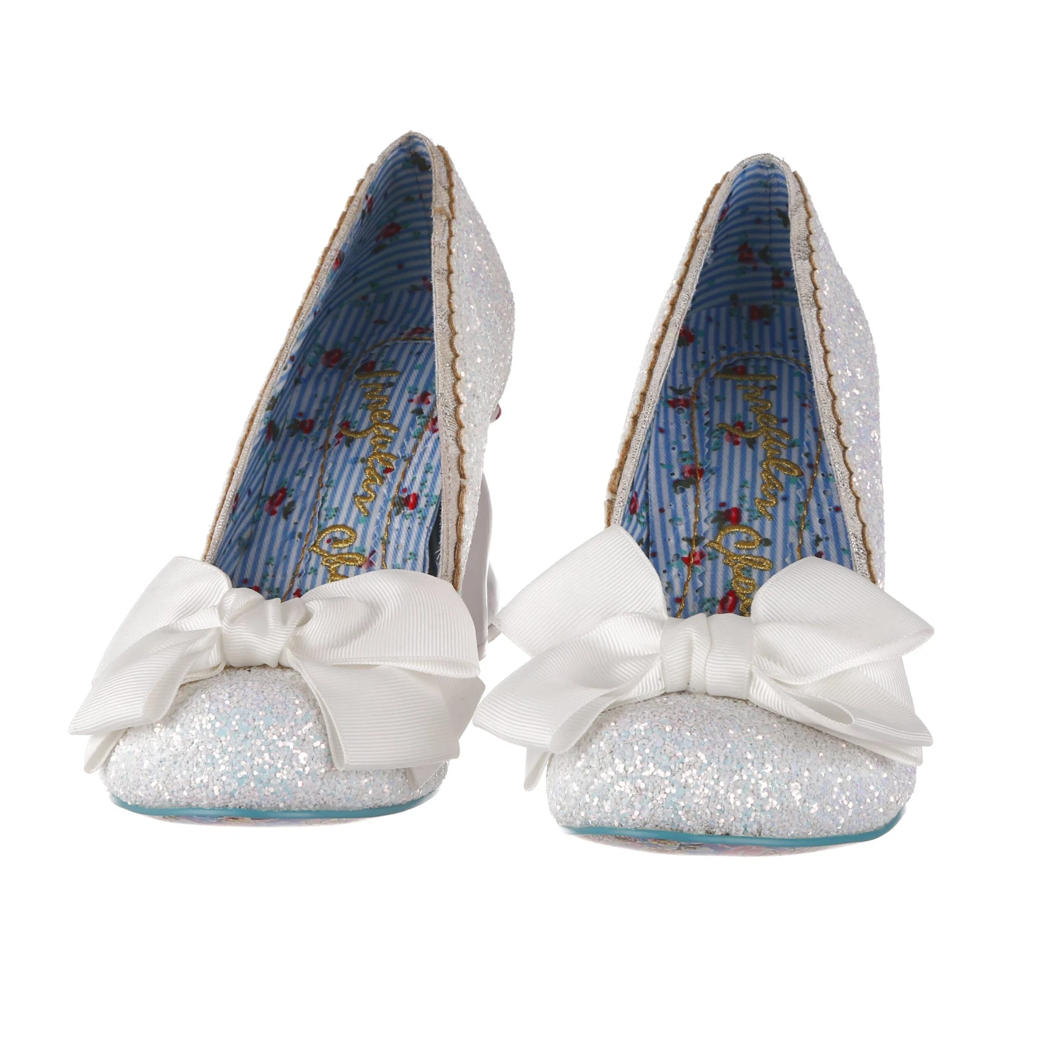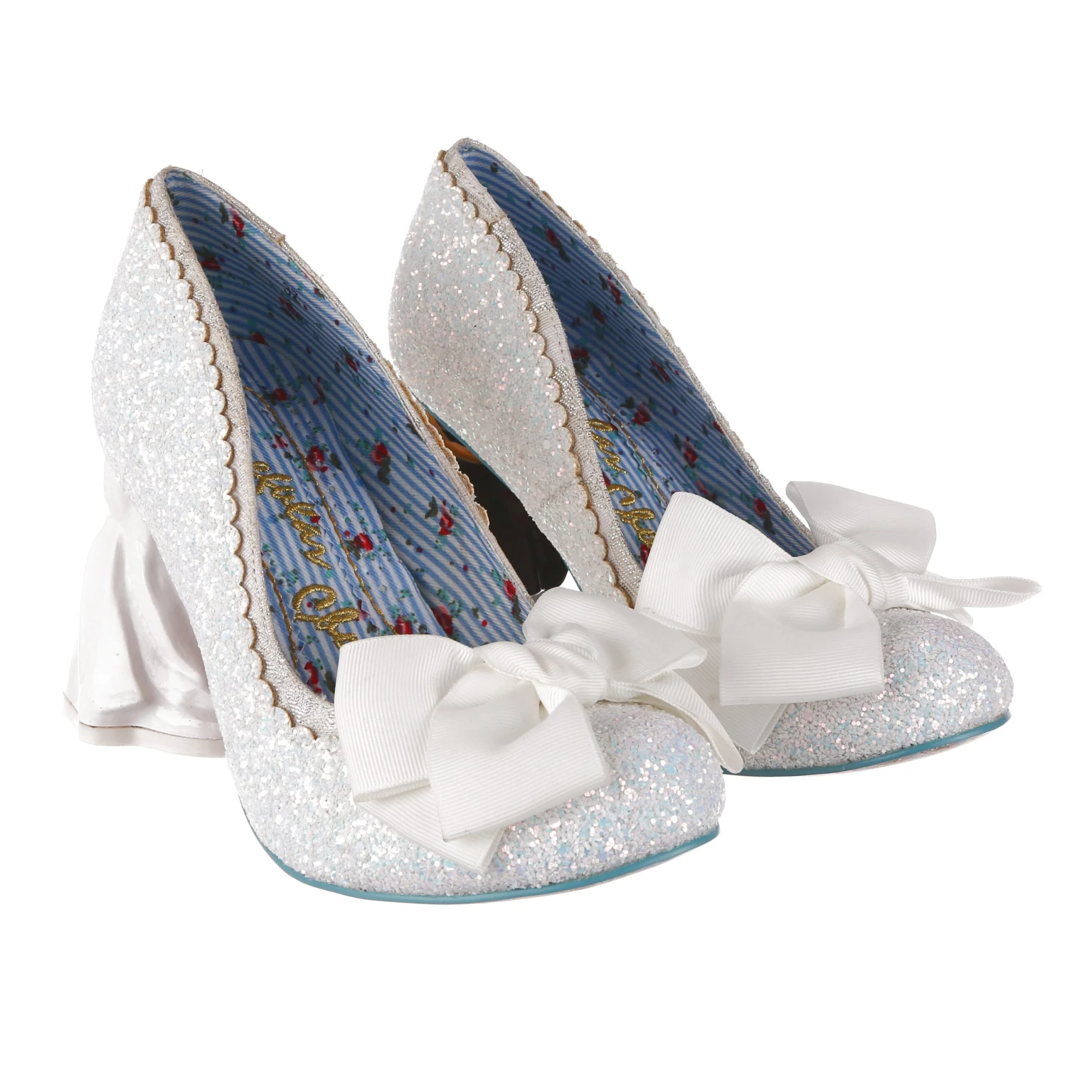 For the Mr and Mrs to be! Sparkle and shine on your special wedding day with these iridescent white glitter encrusted high heels, finished with a white grosgrain ribbon bow on the toe. The kissing bride and groom concept heels turn these wedding shoes into wedding showstoppers! Discover your perfect bridal shoes and get these now!