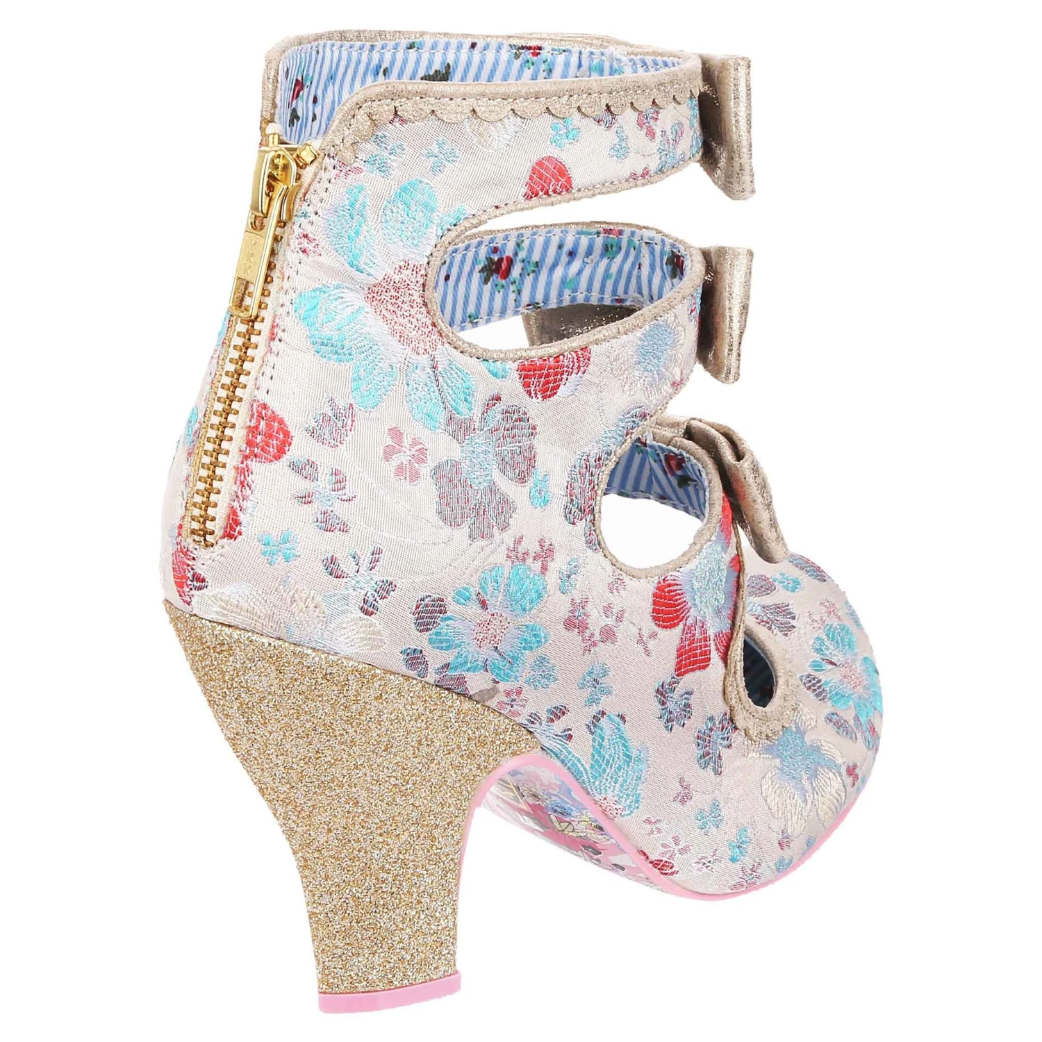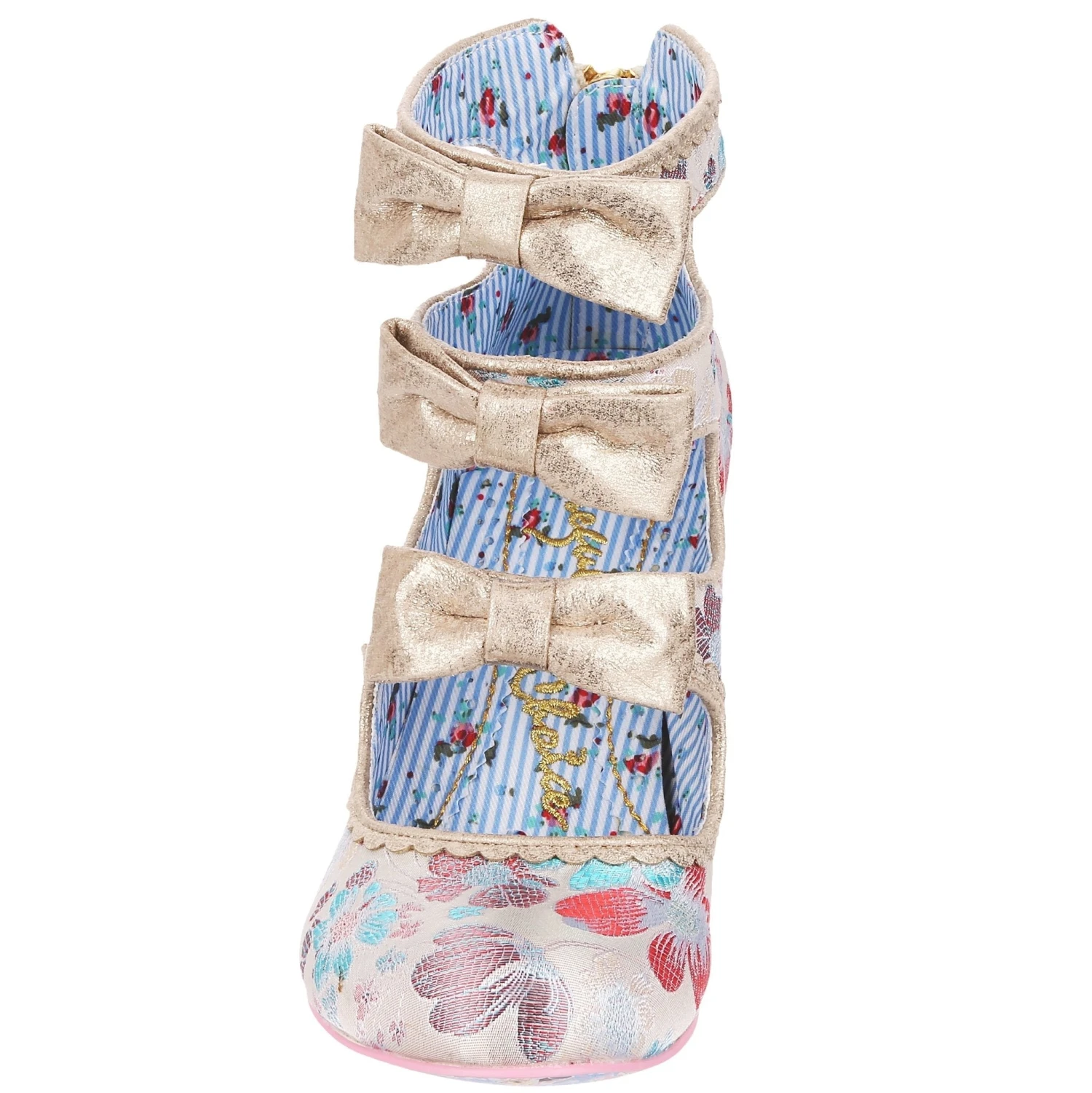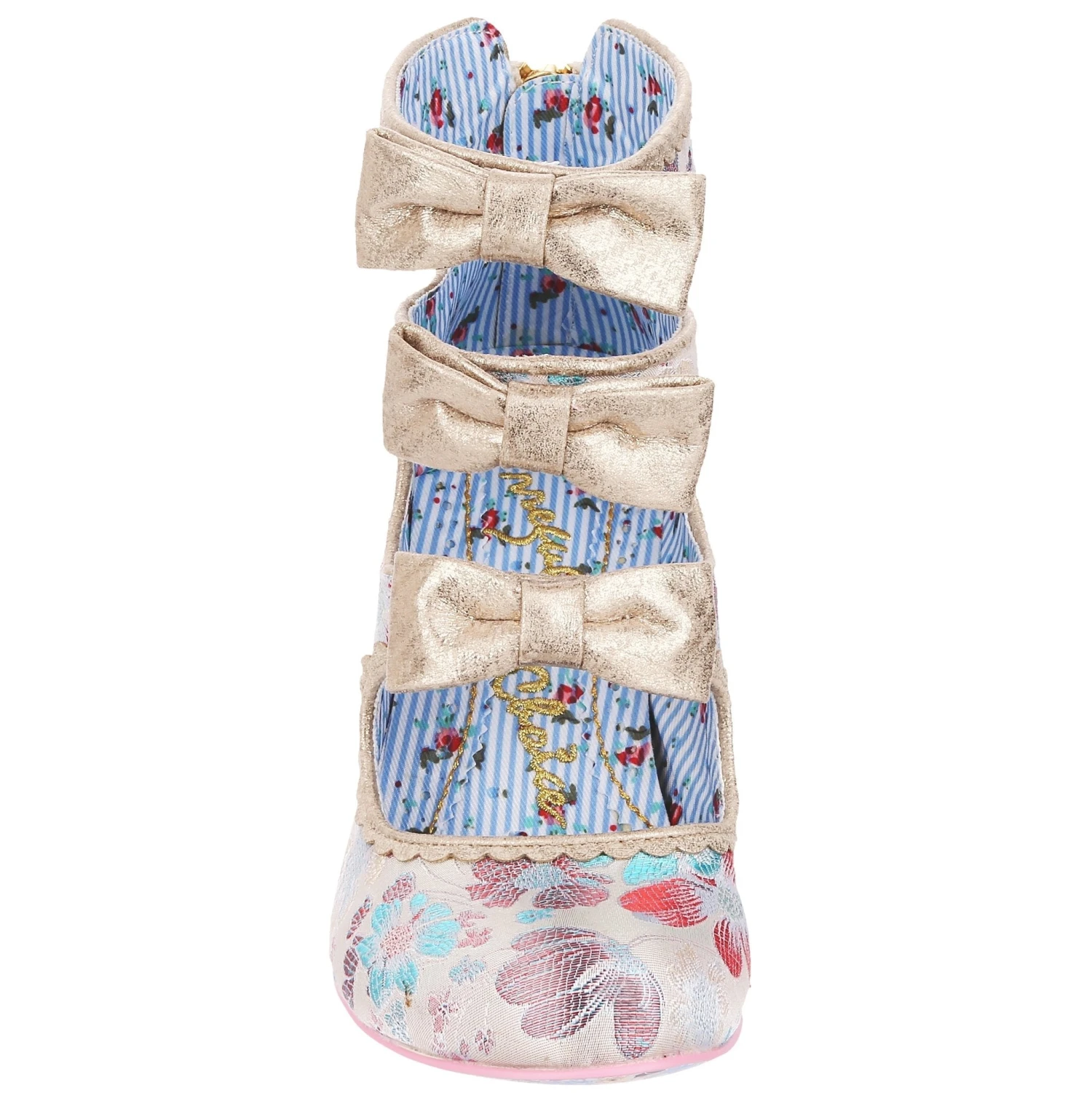All finished with a bow! Wrap yourself in these elegant ivory embroidered cut out high heels. The gold piping, three perfect matching bows and a gold glitter heel create a luxurious feel to these bridal shoes. A handy zip fastening at the back of the boot means they slip on and off comfortably. Add these bow-tiful stunners to your wedding outfit today!