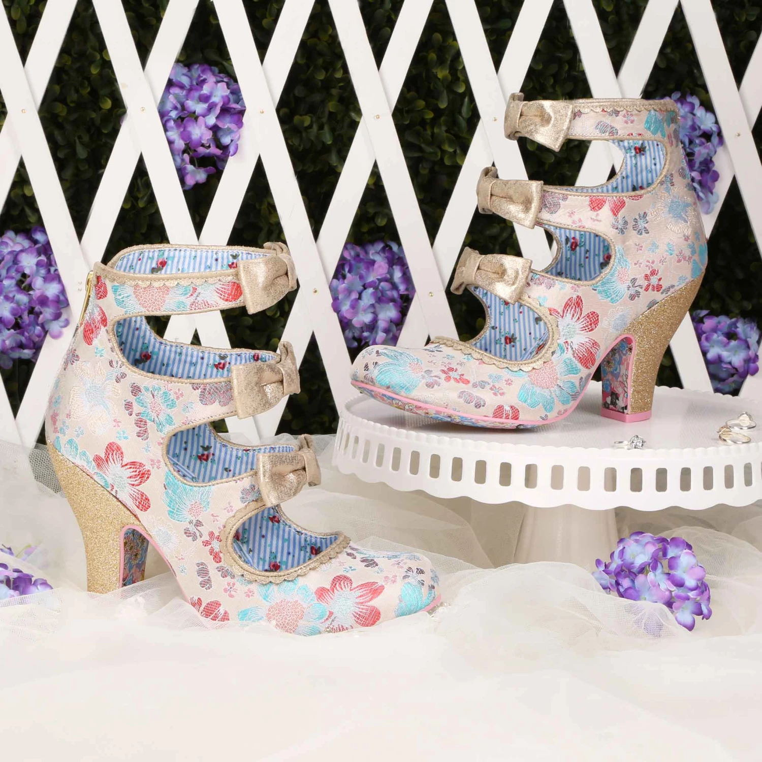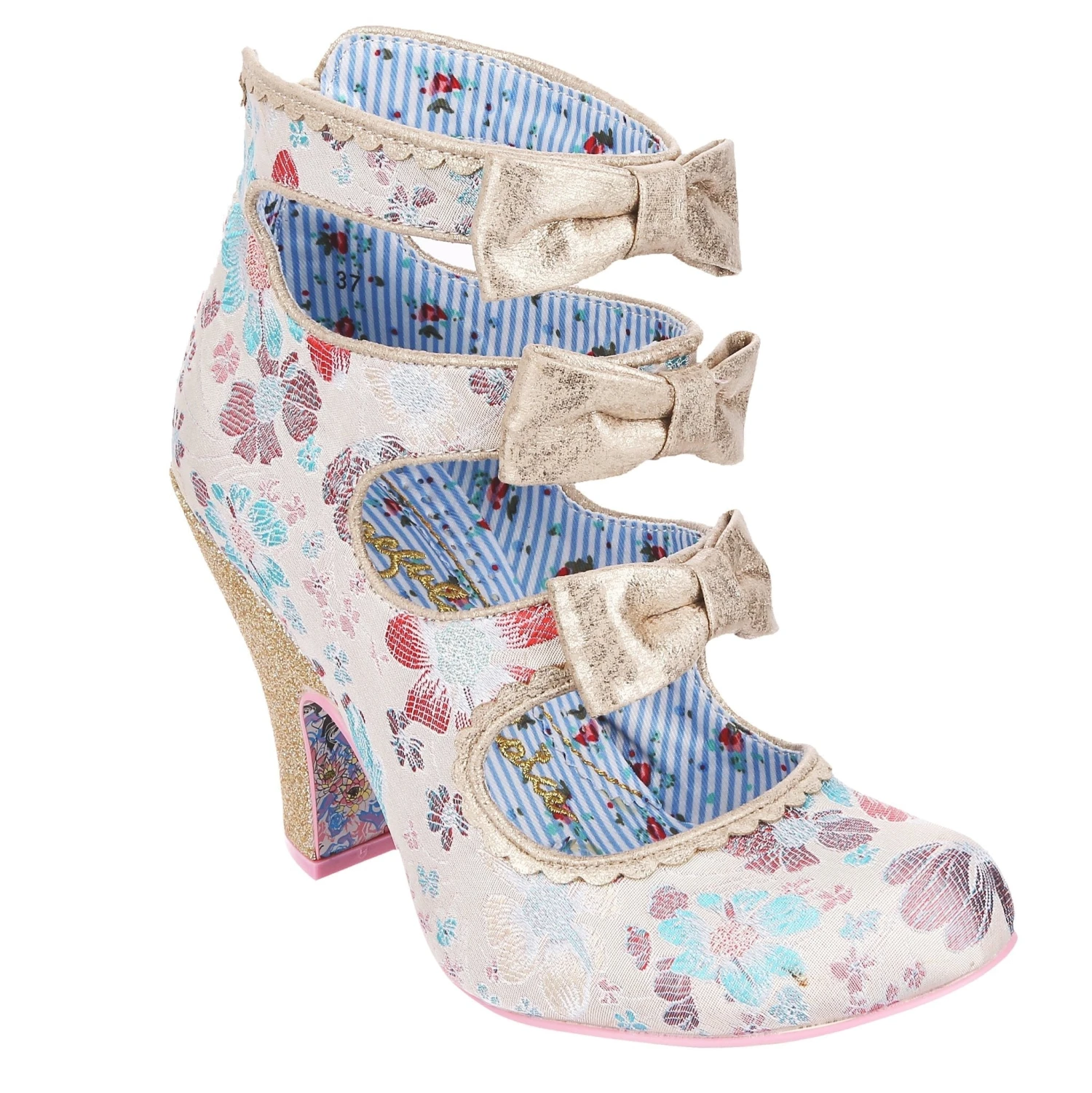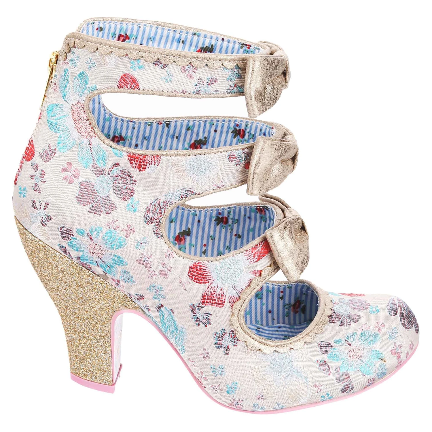 All finished with a bow! Wrap yourself in these elegant ivory embroidered cut out high heels. The gold piping, three perfect matching bows and a gold glitter heel create a luxurious feel to these bridal shoes. A handy zip fastening at the back of the boot means they slip on and off comfortably. Add these bow-tiful stunners to your wedding outfit today!