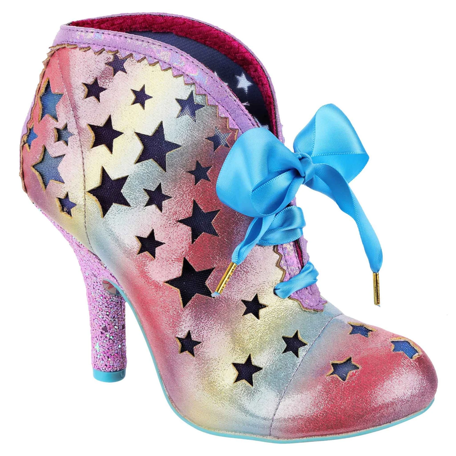 Oh, my stars! How stunning are these? A gorgeous older IC style from the vault which we have reimagined in these fabulous pastel rainbow tones, Sirius has a classic shape, tied in the front with a blue satin bow, the shimmering pastel rainbow is accented with stunning baby pink glitter on the edges and on the heel, with blue mesh in the cutout stars for that little extra final detail – you don’t want to miss these beauties!