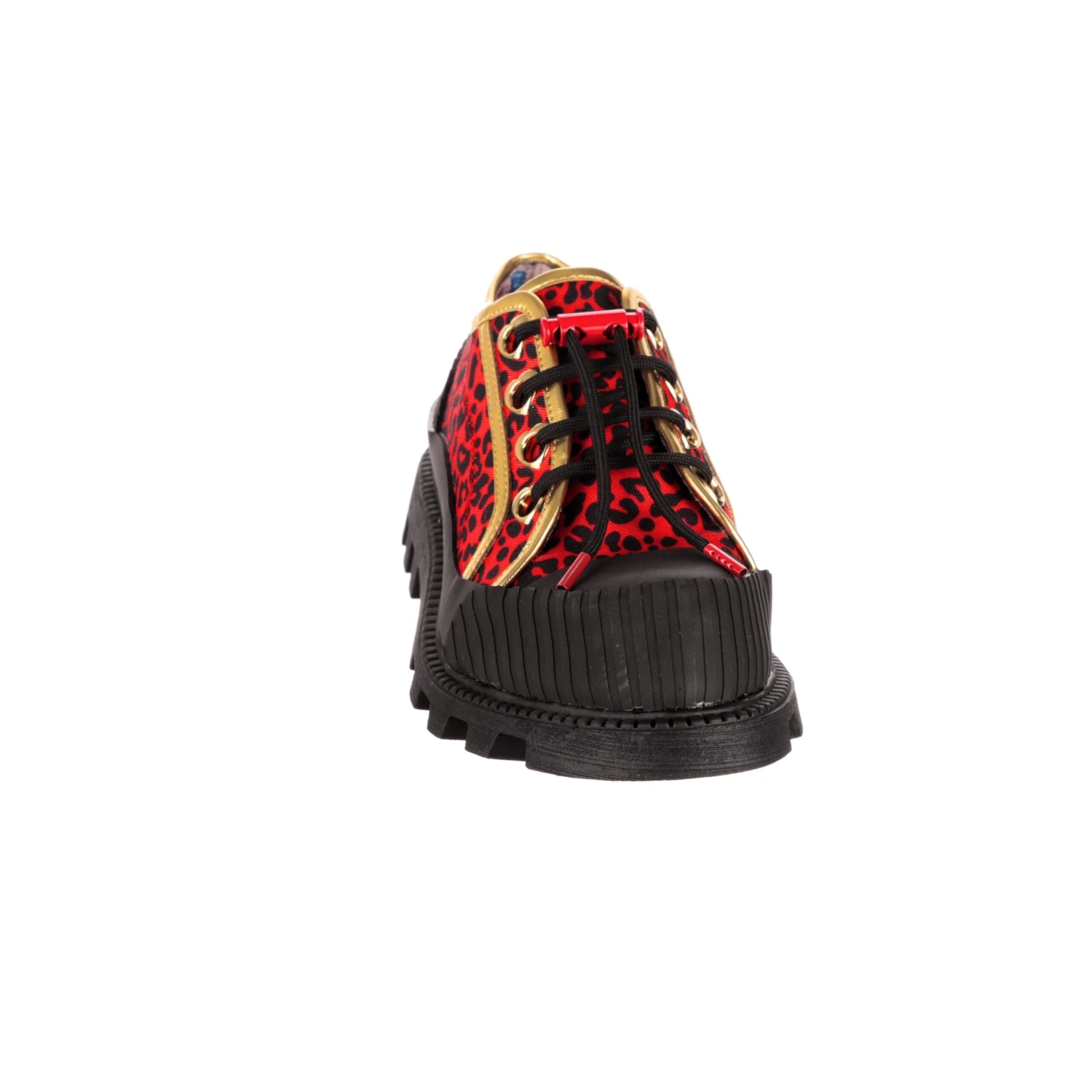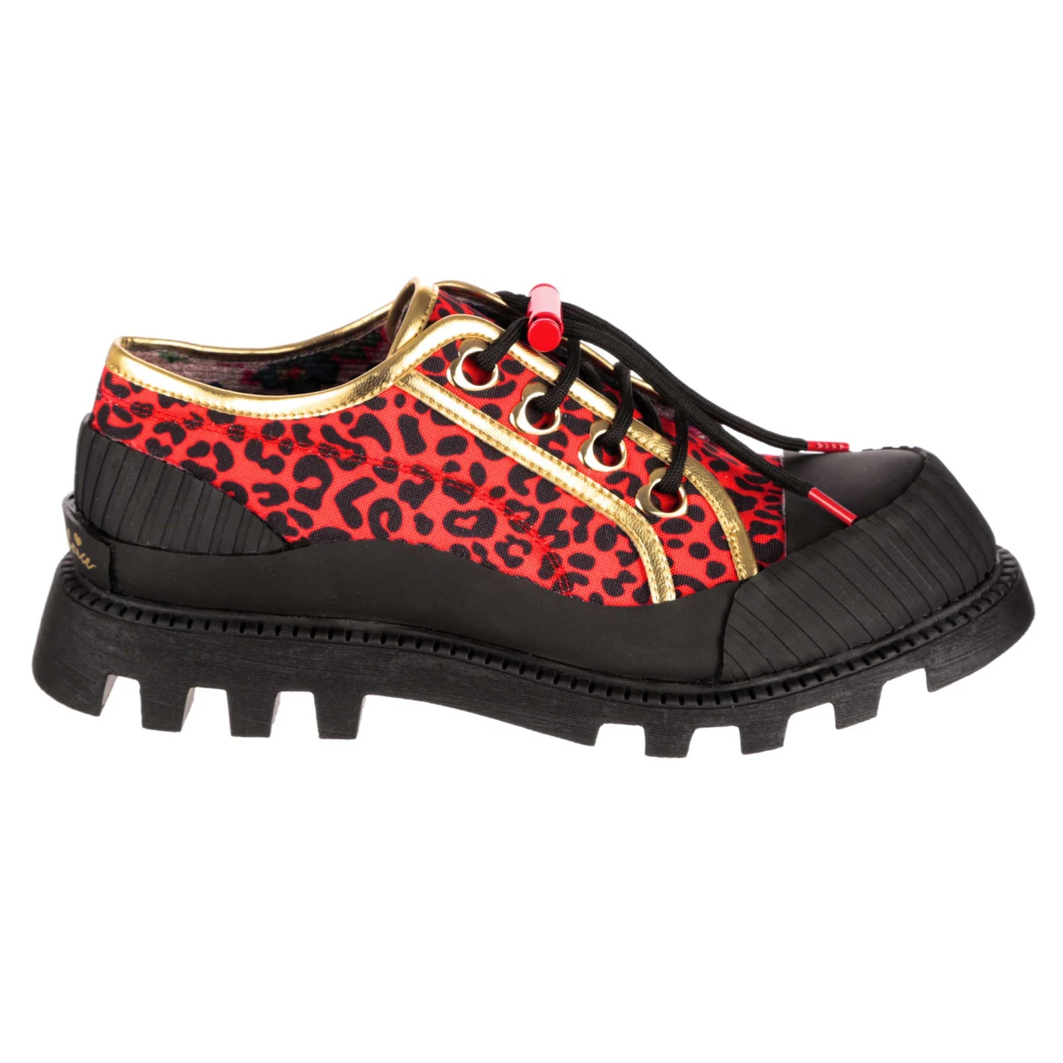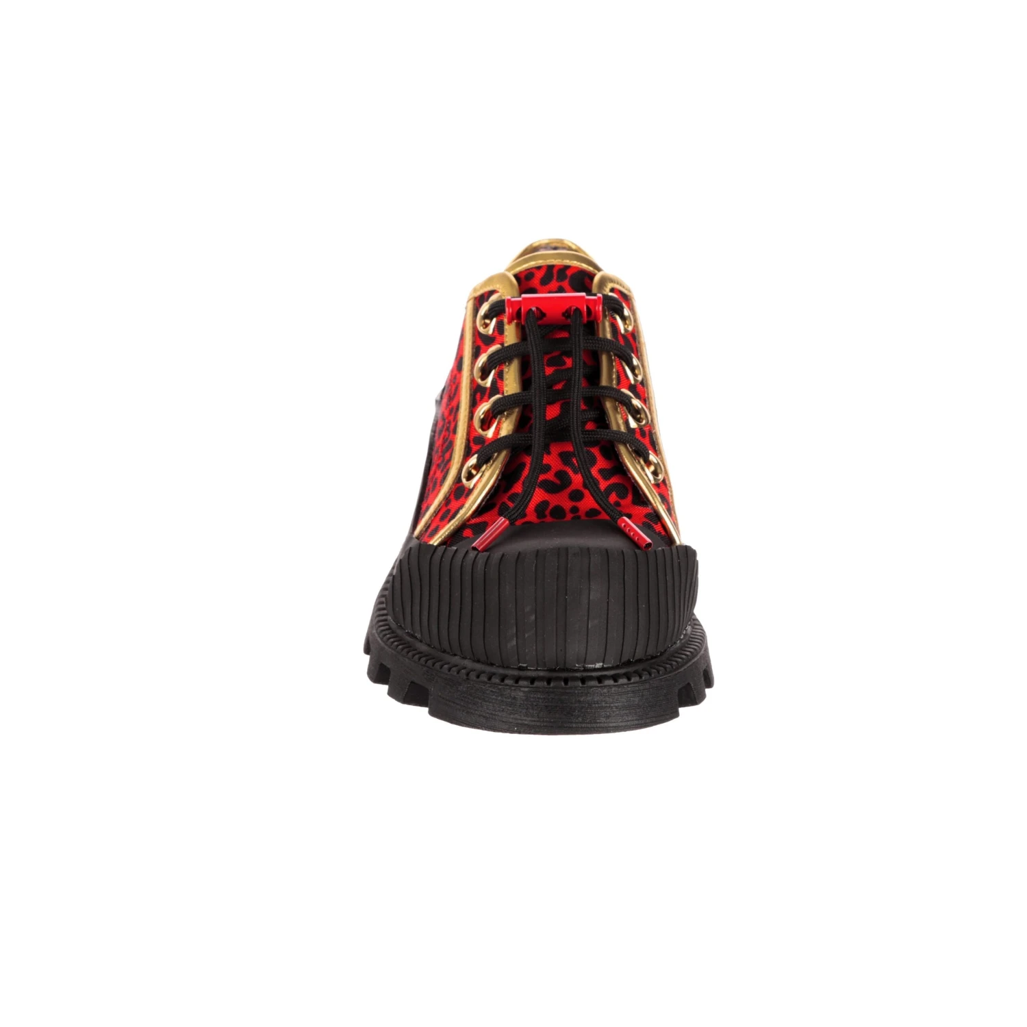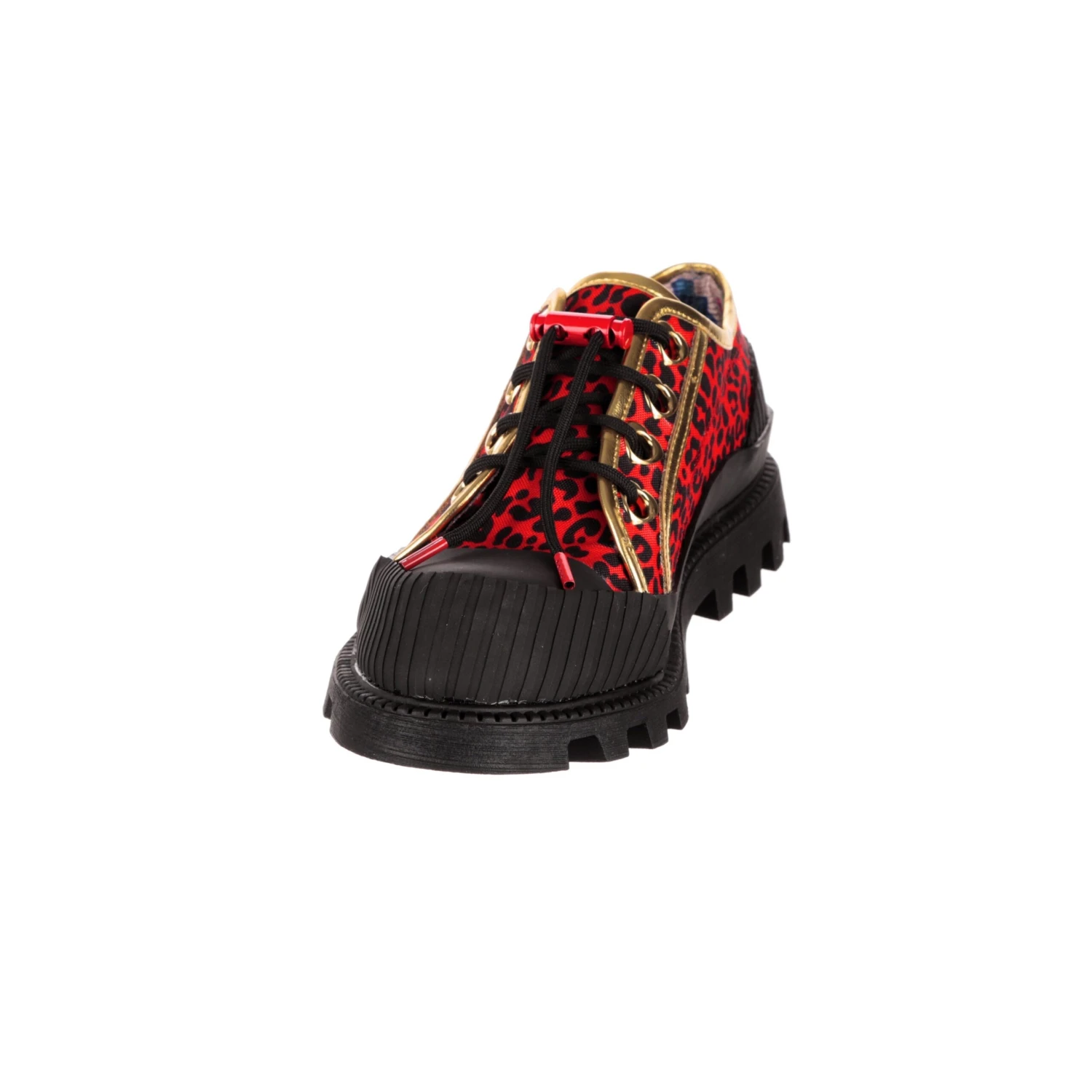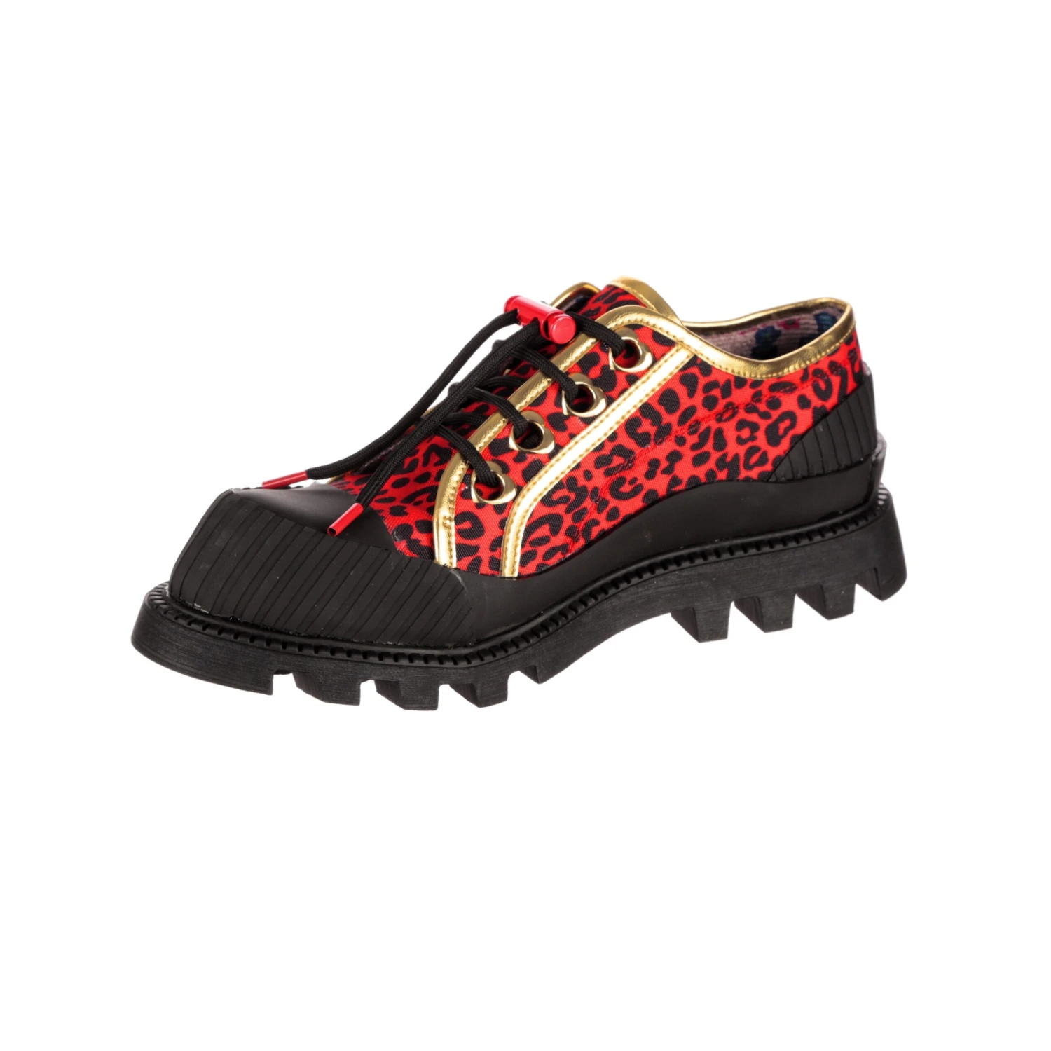 Who’s got time for laces? Simply tighten the toggle on this Iconic statement style with black deep tread and bright red leopard print canvas that you won’t want to take off! Rock on with these chunky flats that’ll make you feel super cool!