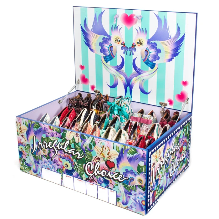 The perfect treasury for you to store your Irregular Choice shoes in style! Our made to order Tropical Storage Chest features our popular parakeet box design.